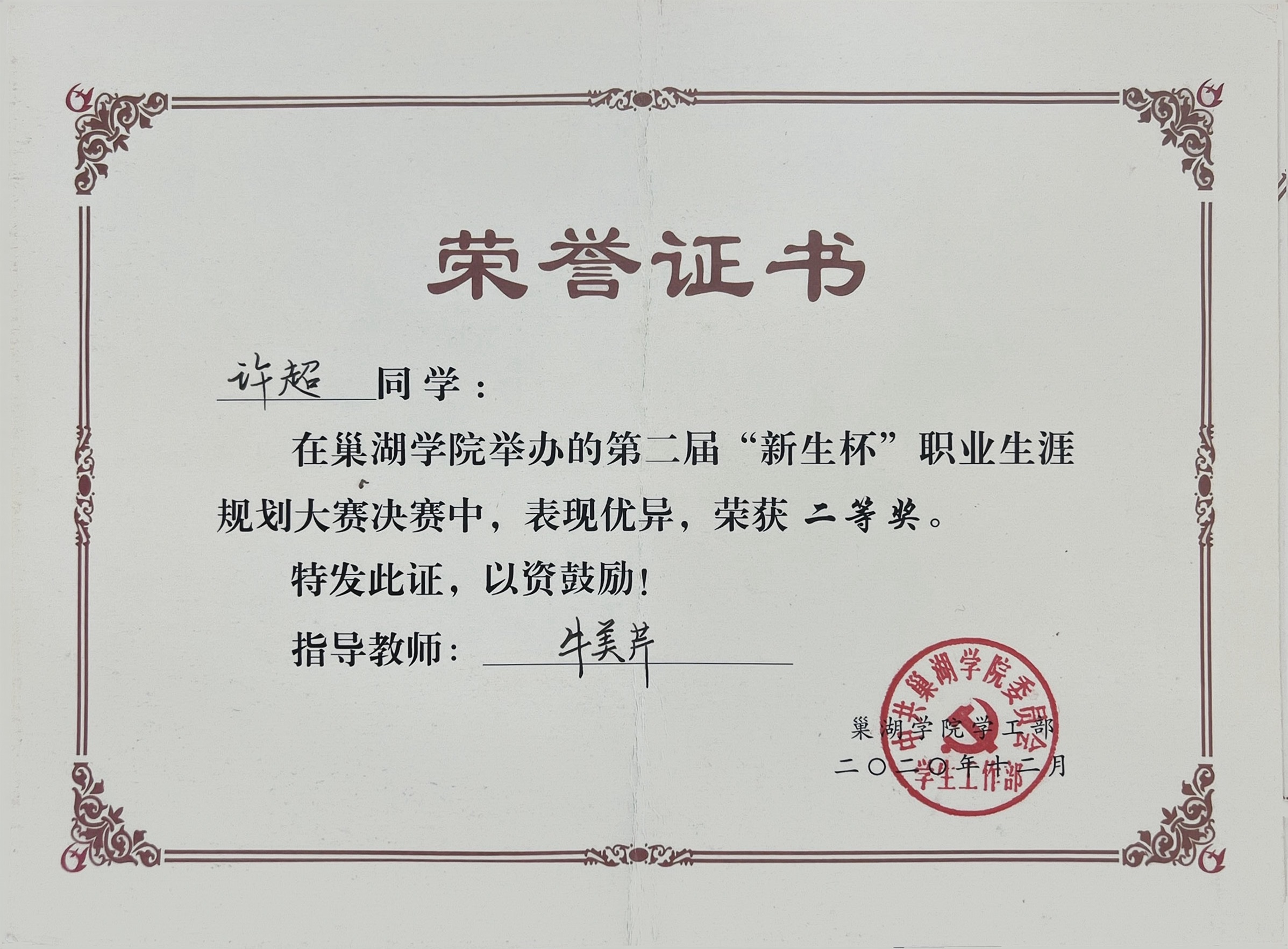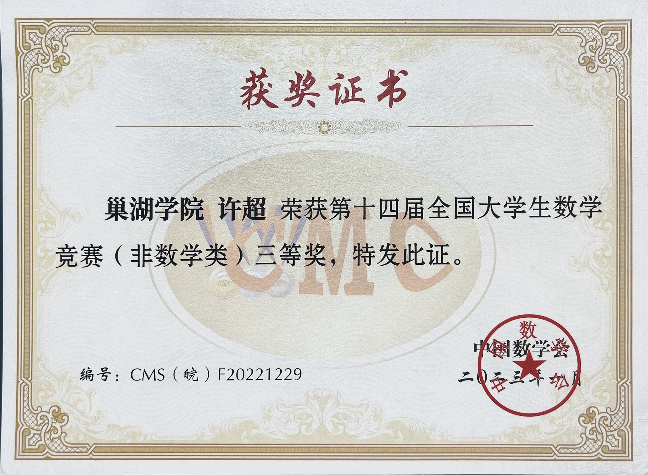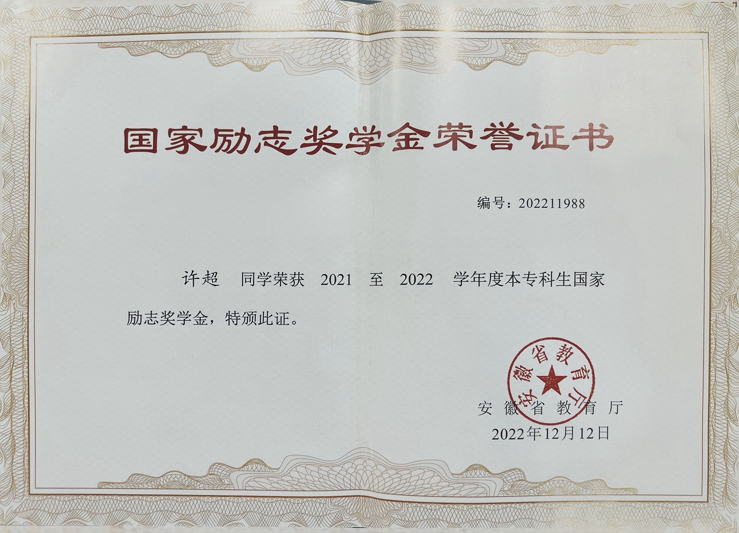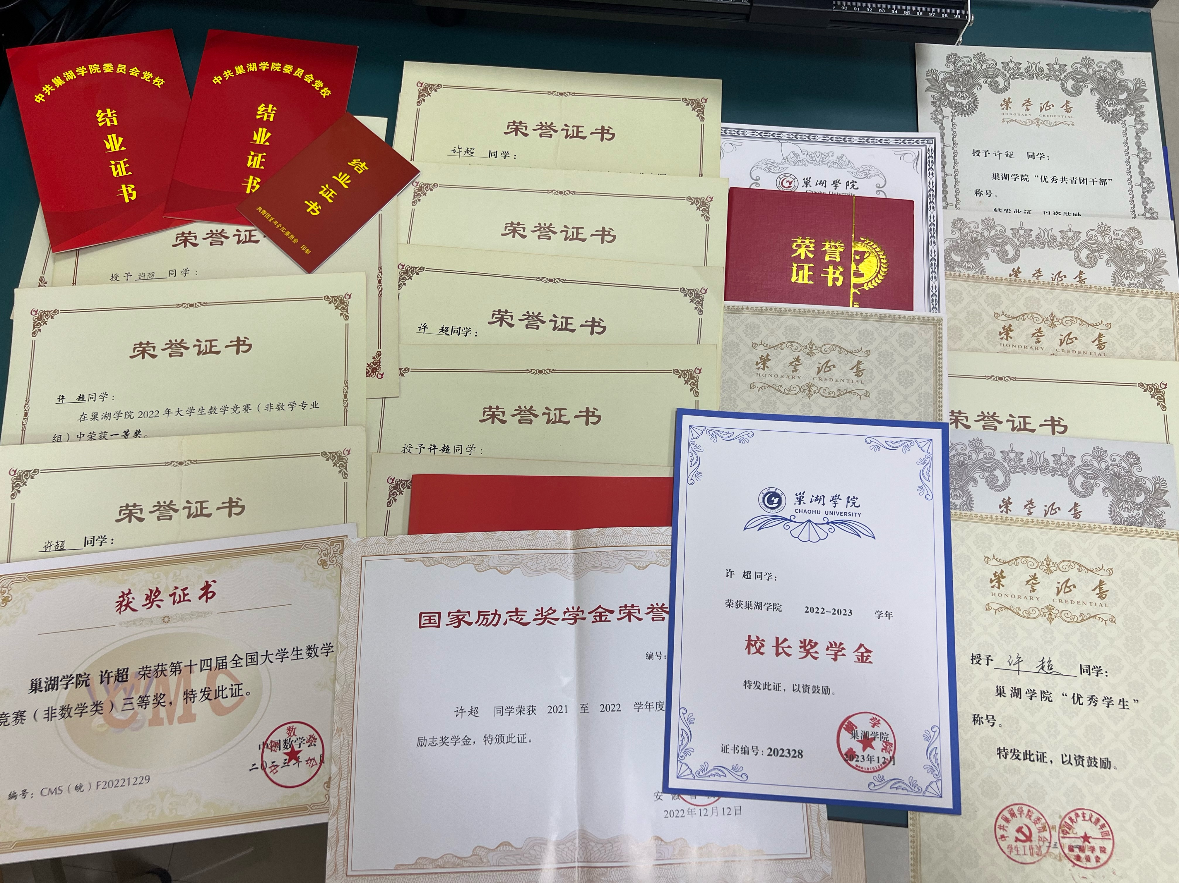 许超的科研之路始于大二下学期,“那时,我已经顺利地通过了英语四级、安徽省计算机二级和国家计算机二级等考试。在备考教师资格证的过程中,疫情的再次袭来让我不得不暂时搁置备考。”