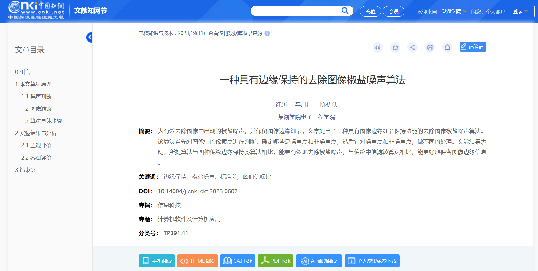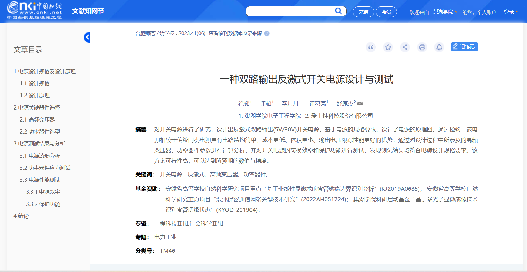 凭借着自己的热情与毅力,从最初的跟随老师学习写论文,到逐渐能够独立进行科研探索,许超展现出了非凡的科研潜力。在大二下学期,许超以第一作者和通讯作者身份发表论文《一种具有边缘保持的去除椒盐噪声算法》,在大三的上学期,他以第二作者和通讯者身份发表论文《一种双路输出反激式开关电源设计与测试》《基于三波频角动量调控》。这些成果不仅彰显了许超在科研领域的才华,也证明了他的努力与坚持。
