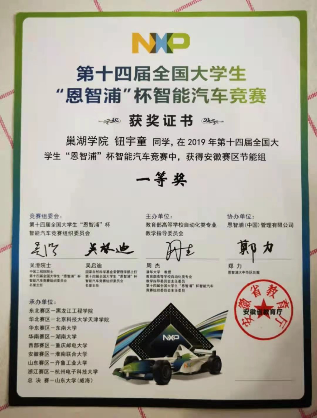 一直到全国大学生智能车大赛初赛前一天,钮宇童组的智能车还是无法安全通过障碍,于是钮宇童直接就放弃了过障碍这一项分。“我当时想的是无论怎么样,只要智能车跑完全程就好了,拿个第三名就不错了。”钮宇童坦言,初赛比完那天晚上,她和同伴两人都觉得自己不会晋级,于是当天晚上两人便收拾好行礼,等着淘汰之后回家。结果第二天早上她们就接到通知,说她们以最后一名的成绩进决赛了。于是,钮宇童与同伴只得再次打起精神,为之后的比赛继续努力。决赛之前,钮宇童组的智能车通过障碍的成功率已经达到百分之八十,但是决赛的时候钮宇童依旧选择放弃过障碍的分,“有的时候,你要适当的取舍,正确的抉择也十分重要。”也正是这个选择,使得她们组最终获得了全国大学生智能车竞赛安徽赛区一等奖。