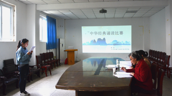 诵读中华经典,传承华夏文明。为弘扬中华民族的传统美德,让同学们感受中华经典的魅力。文教学院于4月12日中午12:30在敏行楼二楼大会议室举办“讯飞杯”中华经典诵读比赛院内选拔赛,此次比赛特邀文教学院陈霞光、章杏玲和卜洪漩老师担任评委老师。