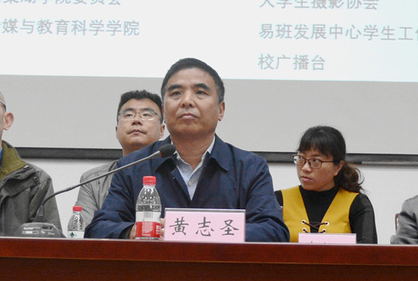 4月17日下午,由必赢626net入口党委宣传部、党委学生工作部、共青团必赢626net入口委员会和文学传媒与教育科学学院共同举办的第十一届大学生传媒节在求实楼报告厅举行开幕式。校党委委员、副校长黄志圣,宣传部、学工部、校团委及各学院师生代表共计400余人参加开幕式。