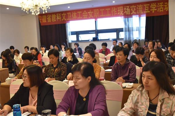 10月11日上午,由安徽省教科文卫体工会主办、安徽师范大学承办的安徽省教科文卫体工会女职工工作现场交流互学活动在安徽师范大学举行。来自全省45所高校的62名女工干部参加了学习交流活动。交流活动由省教科文卫体工会女工委副主任侯伟伟主持。