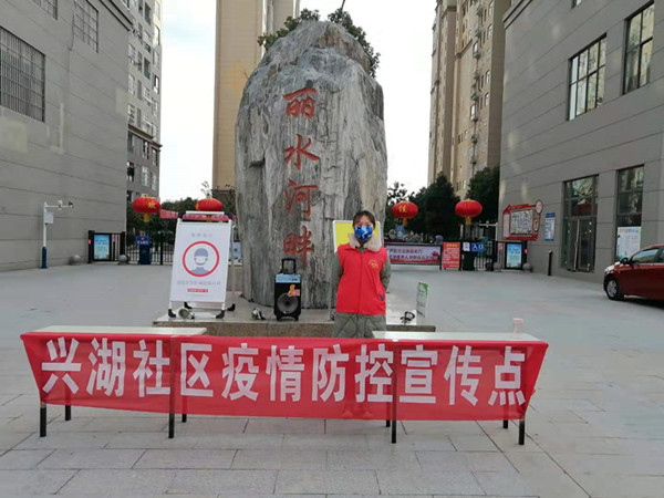 2020年1月31日起,支部成员朱昕旖听说小区物业开始采取各种行动,切断疫情传播途径时,她积极主动地报名加入了志愿者活动。在疫情宣传方面,朱昕旖与其他志愿者一起在各单元门口张贴宣传,并在醒目的地方拉横幅,她还配合工作人员号召住户不串门,尽量不外出,外出必须戴口罩,做好防护工作;在防疫消毒方面,朱昕旖和各位保洁人员一起在小区中的各个公共区域进行了全覆盖式的消毒工作。除此之外,朱昕旖还在小区门口对每日上班的员工和进入小区的住户进行体温测量,为打赢“疫情保卫战”贡献了自己的力量。