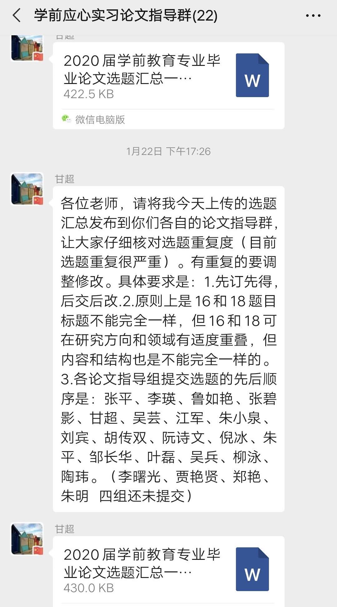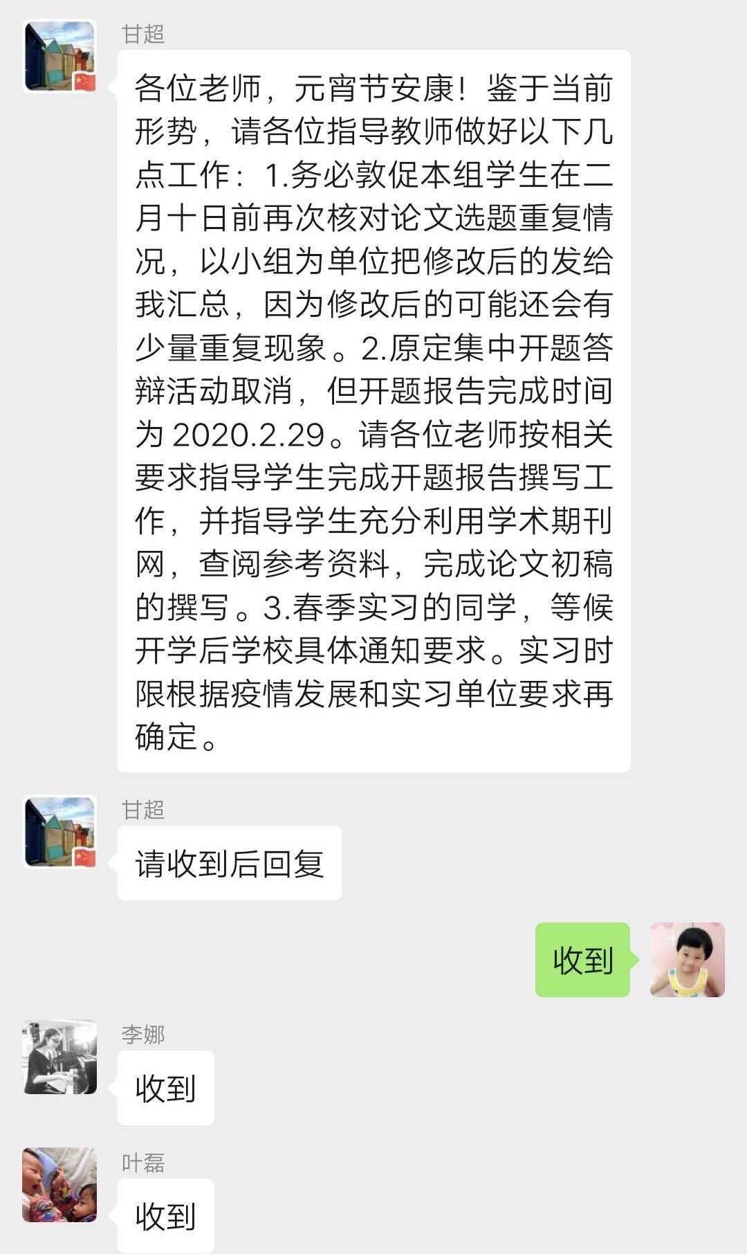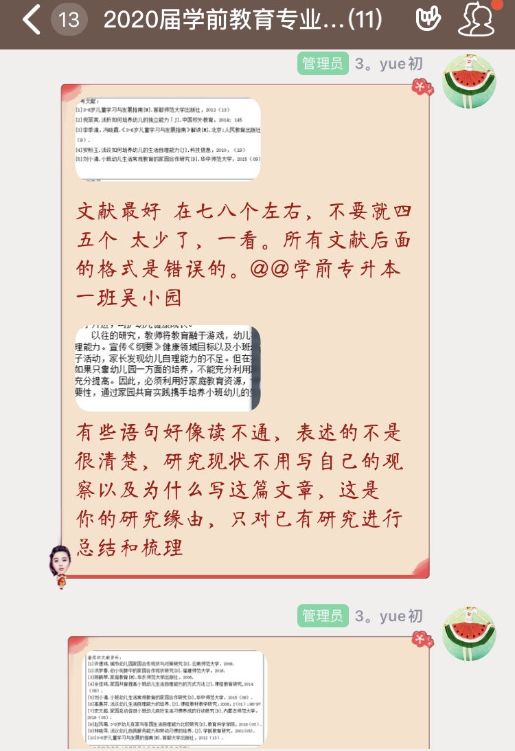 毕业论文(设计)是高校毕业生最核心的学业任务。目前也是进行毕业论文(设计)的关键时期。虽然一场突如其来的新冠肺炎疫情在一定程度上打乱了毕业生的论文撰写计划,但是学前教研室全体教师认为只要加强与学生沟通,对毕业生论文完成情况远程监督,并提供及时指导,实现“指导形式有变化、论文质量不打折、工作进度不延误”,就能够确保学生如期按质完成顺利毕业。(文/鲁如艳 图/朱小泉、陶玮、张平 审/李曙光)