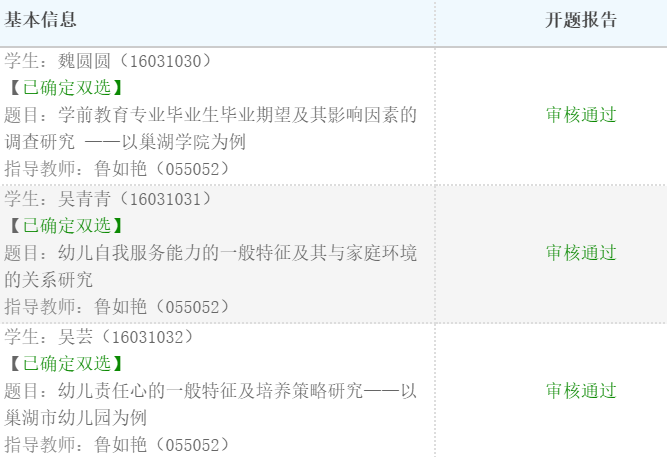 毕业论文(设计)撰写是人才培养过程中的一个重要环节,它有助于培养学生综合运用所学知识独立分析问题和解决问题的能力。根据学校疫情防控期间2020年春季学期本科教育在线教学工作整体安排要求,本着“延期不延教,停课不停学”的原则,充分发挥学校本科毕业论文(设计)管理系统全过程线上管理的特点,学前教育专业在疫情防控期间就2020届本科毕业论文(设计)工作顺利推进。