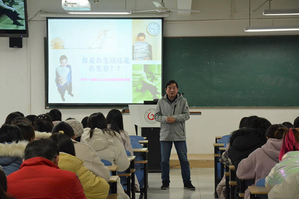 活动伊始,李曙光介绍了由于学习、就业等问题的影响,导致部分大学生长期处于心理亚健康状态,如没有有效的干预措施,亚健康状态可能发展为不健康,并产生极端行为。他分别从就业创业、情感问题、学习考试、生活消费、人际关系五个方面深入分析了大学生产生心理压力的原因,举例说明了心理压力的来源以及对自身的影响,他希望同学们能够重视自我心理管理,提高心理免疫能力和心理承受能力。随后李曙光重点介绍了缓解自身压力的方法,鼓励同学们主动和同学、朋友倾诉,通过正常的方式宣泄情绪,掌握心理调节的基本方法。