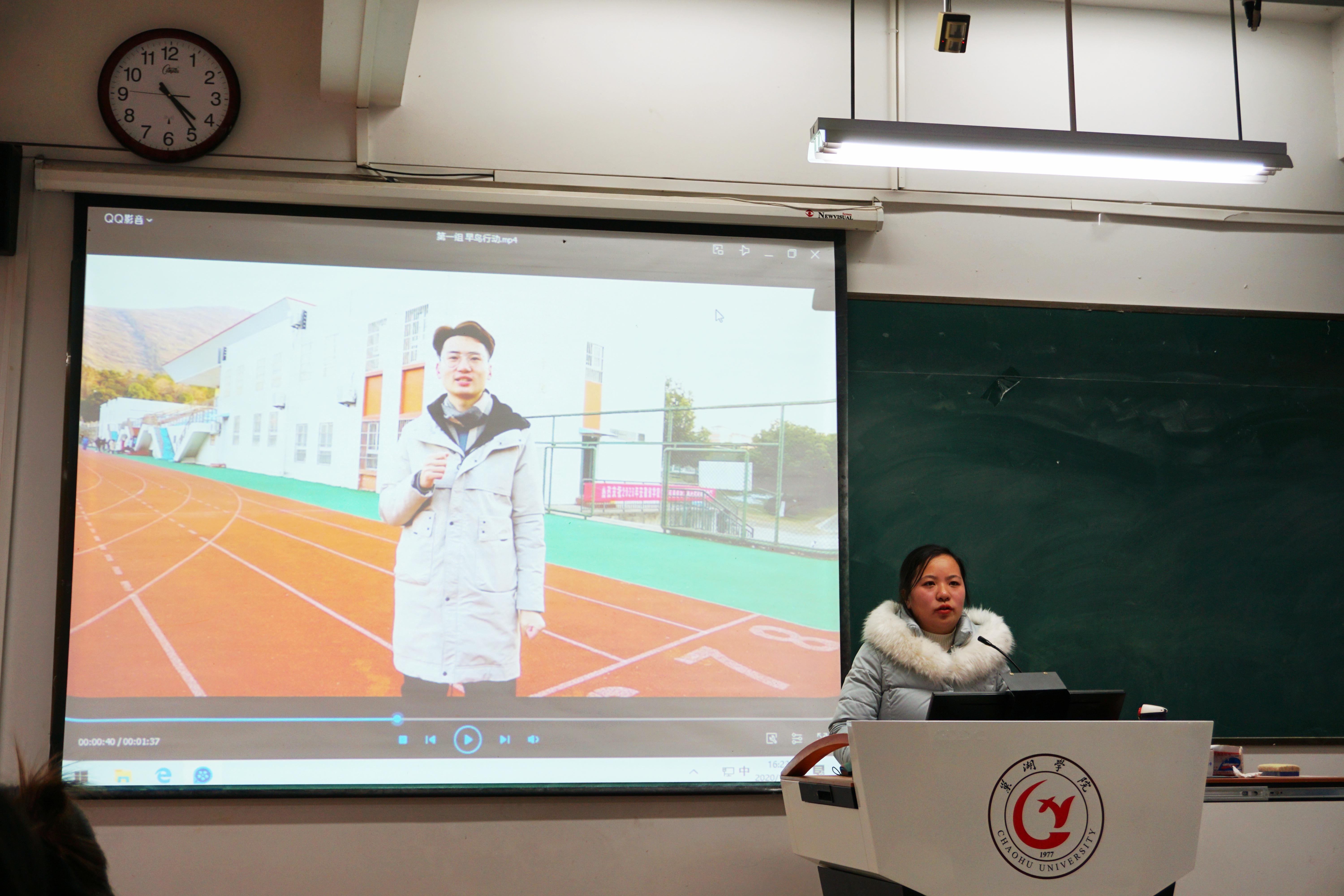 为了推进《新闻采编综合训练》课程教学改革,提高学生专业实践能力。12月21日下午16:00,2018级广播电视学专业《新闻采编综合训练》课程成果汇报交流会,在慎思楼中103教室顺利召开,会议由授课教师黄颖主持,学生全员参与。