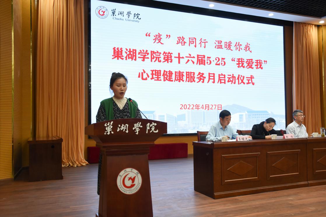 文教学院副院长、心理健康教育与咨询中心负责人李曙光对本次5•25心理健康服务月活动具体方案进行了解读与说明,希望各学院积极配合,踊跃参与,创造性地开展各项活动。二级学院心理辅导站负责人代表王安琪老师和班级心理委员代表李真同学上台发言,分享了自己作为巢院心理人在心理健康活动中的经验和收获,并对后面做好自己工作积极表态。