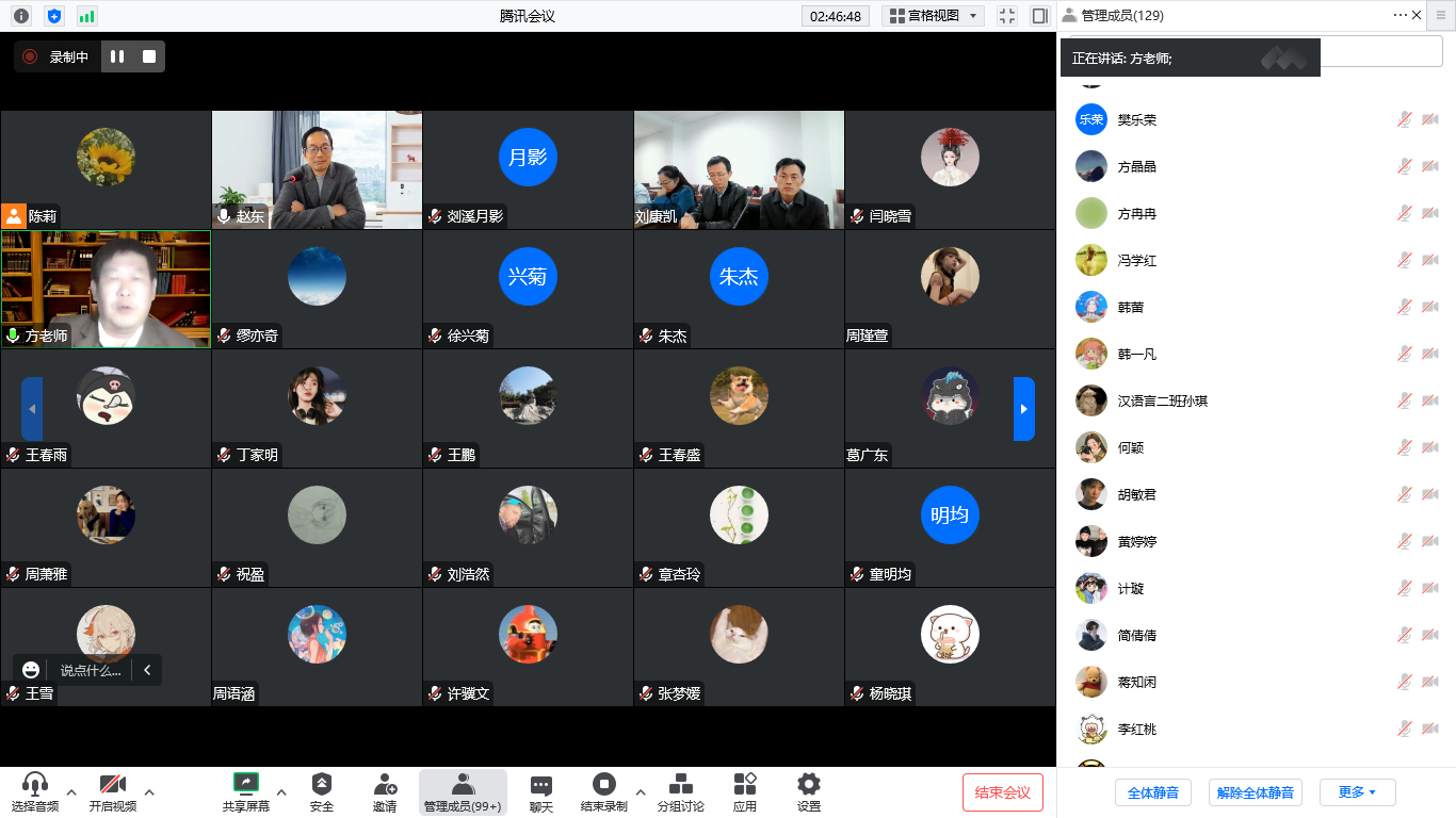 1117日下午,文学与传媒学院学术活动月系列活动之汤山文学讲坛2期通过线上线下相结合方式如期举办。安徽师范大学文学院教授、博士生导师、中国现当代文学专业学科学位点负责人方维保应邀题为“中国现代小说创作与长篇小说文体建构”的学术讲座。学院学术委员会主任、中国语言文学学科负责人赵东教授主持讲座,教师、学生代表参加。