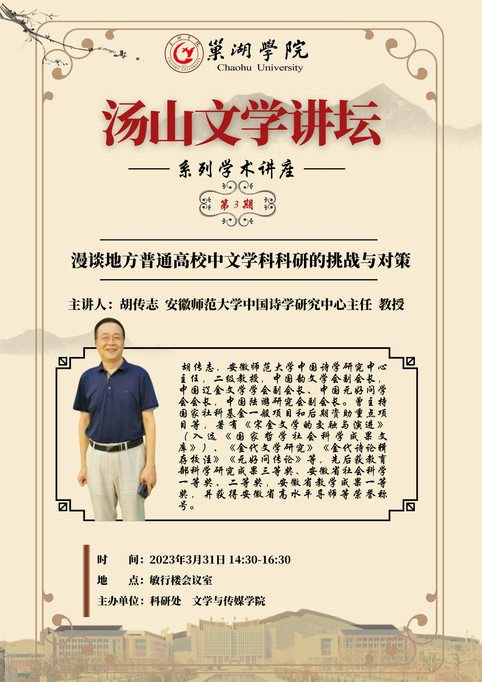 【 汤山文学讲坛(第3期)】漫谈地方普通高校中文学科科研的挑战与对策