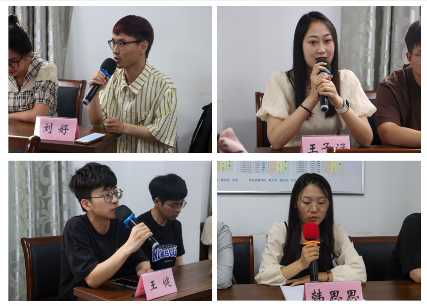 座谈会上,孙冰对与会人员进行介绍,希望同学们结合在校期间的求学实际畅所欲言,将自己对学院教学科研、管理服务等方面的意见建议表达出来,促进学院工作不断改善和提高。与会毕业生代表们踊跃发言,分享了自己在校期间的学习、成长历程,表达了对母校和老师的感恩之情,并积极为学校、学院的未来发展建设提出了宝贵的意见和建议。参会教师和毕业班辅导员们回顾了过去与同学们共度的大学时光,对毕业生们的未来工作和生活表达了美好祝福。