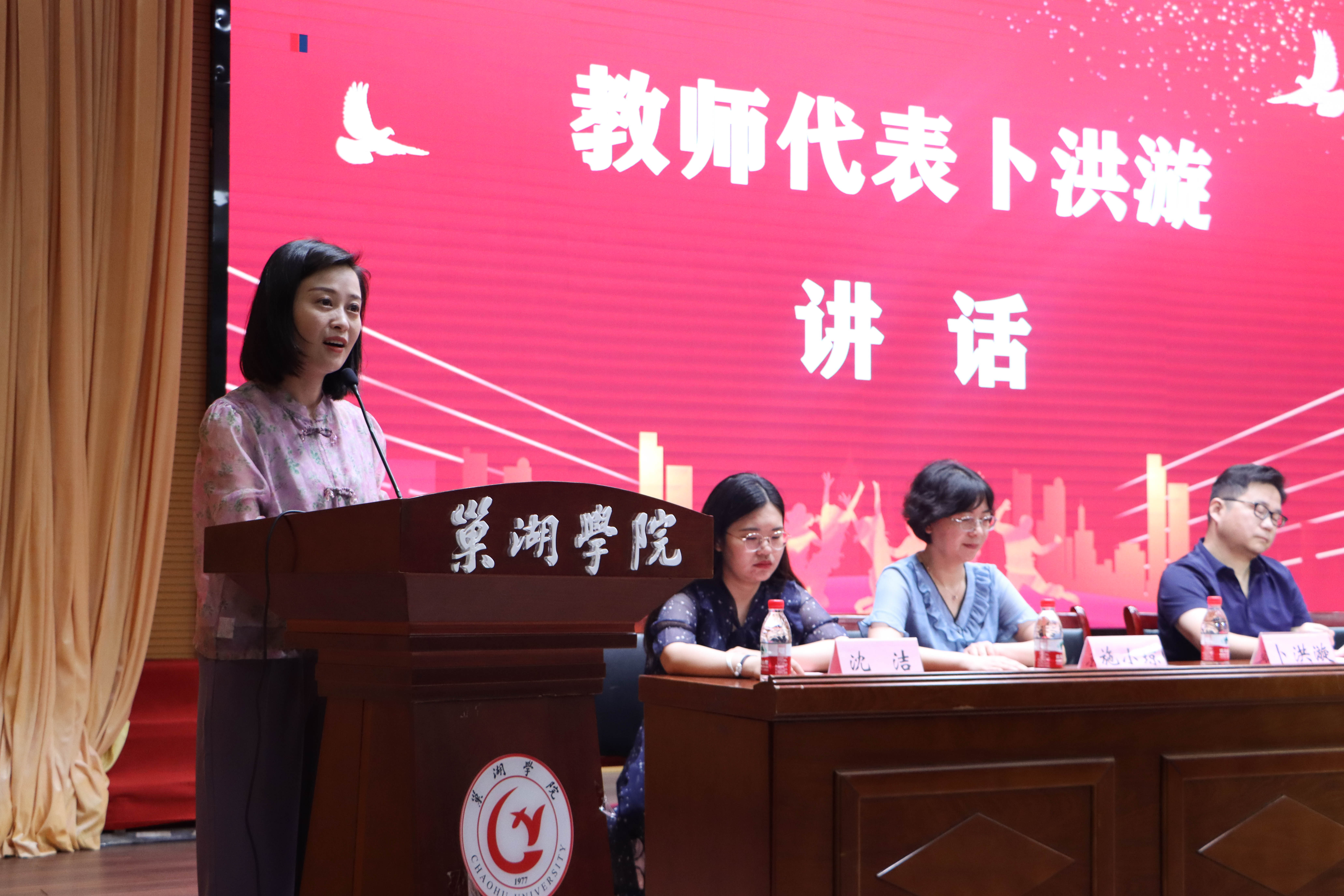 教师代表卜洪璇给2023届毕业生们上了特殊的“最后一课”,她说“准备了很多讲稿,但好像又都不满意”,索性抛弃了讲稿。她回顾了与同学们相处的点点滴滴,哽咽的话语中表达了对同学们深切的不舍。并送上了最后的祝福:“永远做善良的人温暖的人、郑重而温情的生活、永葆思考的习惯、勇敢追求心中的目标!”