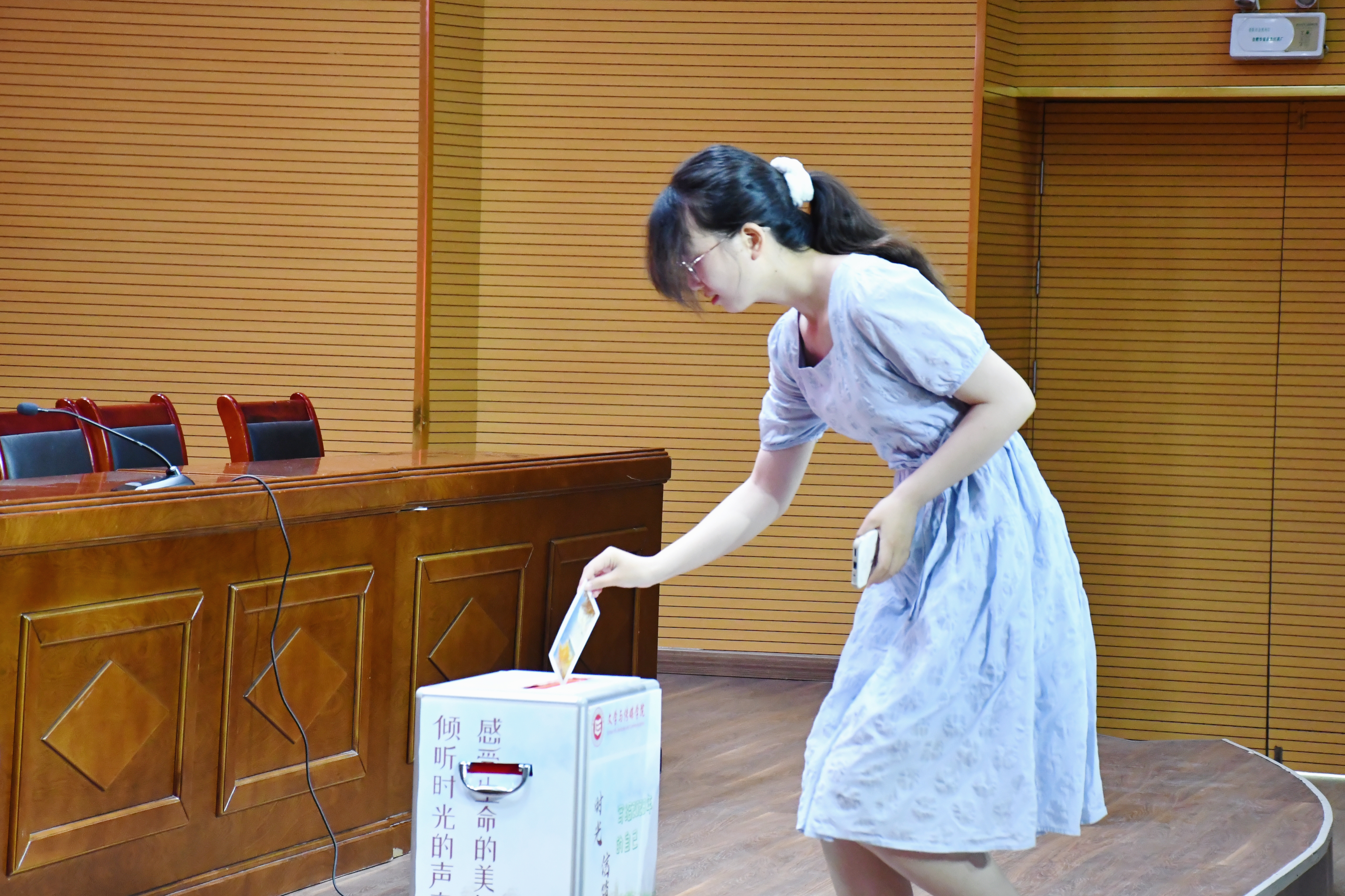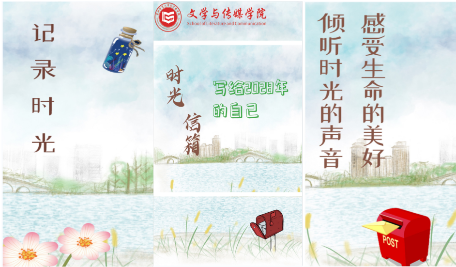 伴随着《祝你一路顺风》音乐的响起,同学们不自觉地跟唱,他们拿起手中的笔,将想对五年后自己说的话写在学院专门设计定制的明信片上,并将明信片投入“时光信箱”,相约五年后再次相聚。
