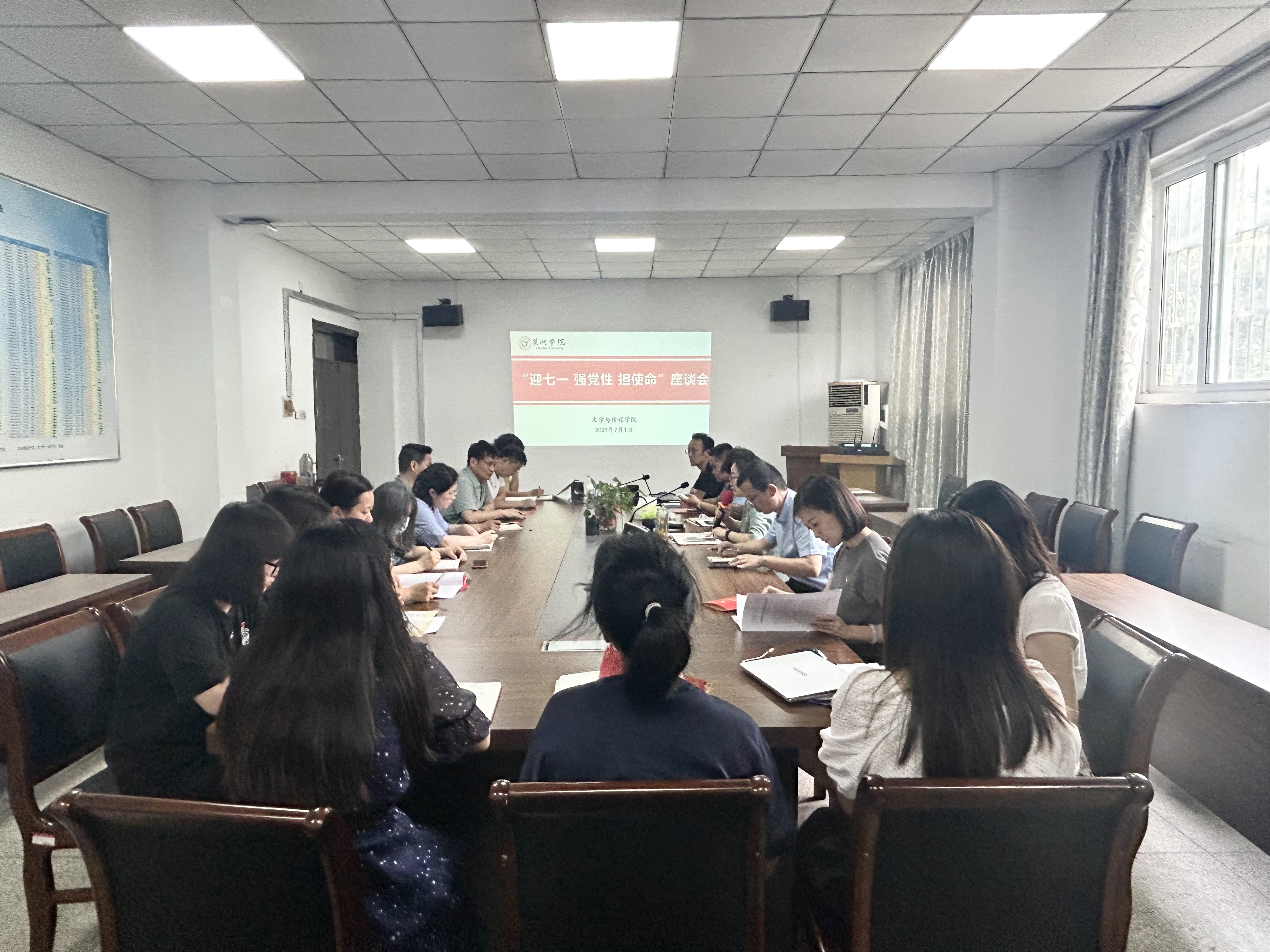 凝聚共识,勇担使命,学院党委于7月1日中午召开“迎七一 强党性 担使命”座谈会。座谈会上,王宇明对学校高水平大学建设实施方案和学院2023年目标任务完成情况进行了详细解读,陈先涛、毛莎莎、周洪波等党员围绕“推动学院高质量发展”主题进行交流发言。彭正生要求紧密结合主题教育,全体党员教师需要进一步增强党员荣誉感、使命感、责任感。袁凤琴在最后总结时强调,面对新形势新任务新要求,全体党员要充分发挥模范带头作用,坚持实干导向,问题导向,目标导向,助推学院高质量发展。