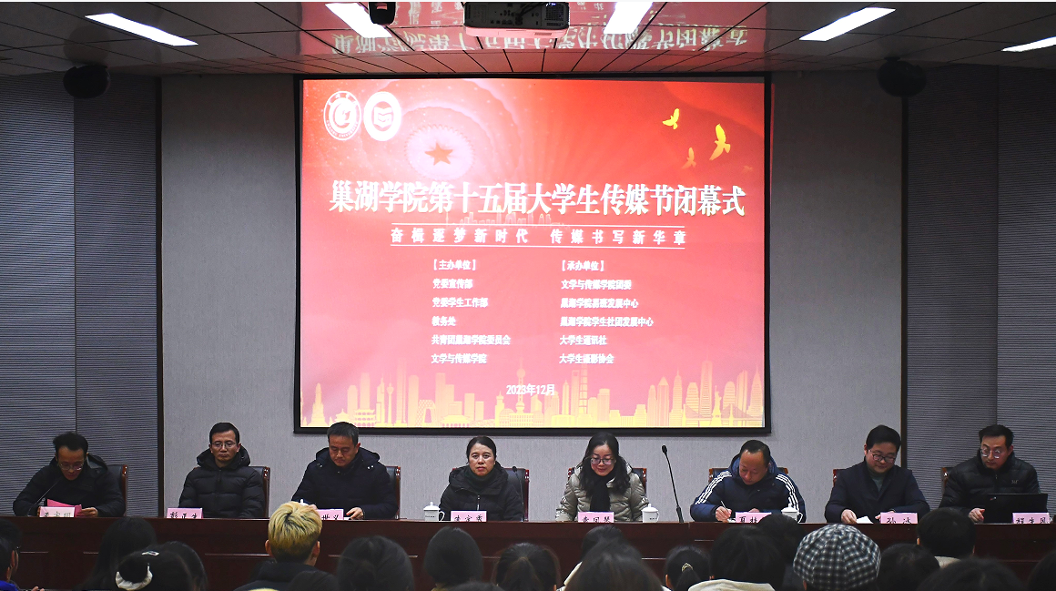 12月20日下午,必赢626net入口第十五届大学生传媒节闭幕式在致知楼报告厅举行。校党委委员、副校长朱定秀,校党委学生工作部副部长夏桂林,校教务处副处长汪世义,文学与传媒学院党委书记袁凤琴、院长彭正生、副书记孙冰、副院长王宇明,部分指导教师和获奖同学参加了闭幕式。闭幕式由王宇明主持。