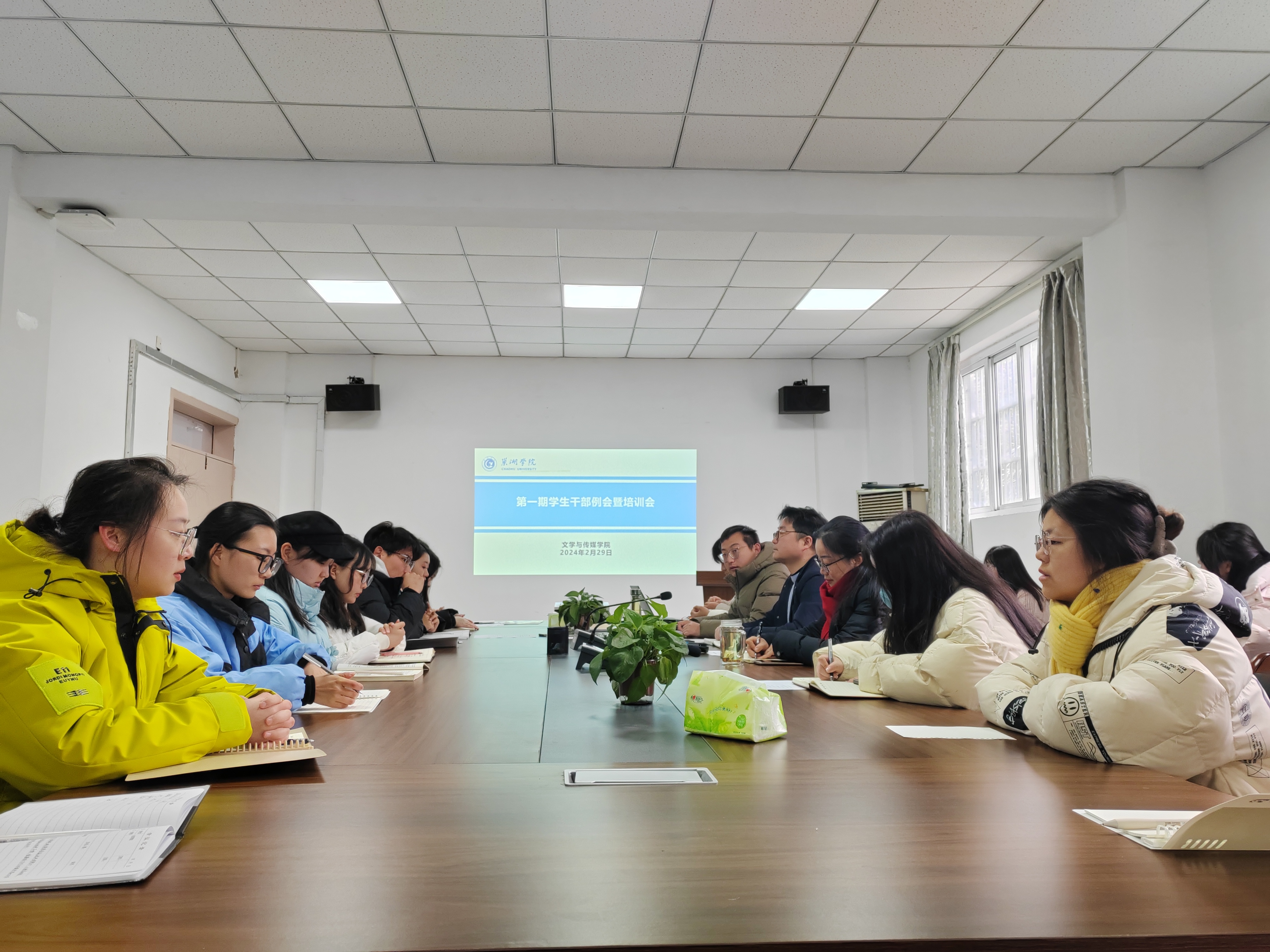 为进一步提高学生组织工作的积极性,明确工作方向,顺利开展新学期工作,2024年2月29日中午,文学与传媒学院在敏行楼会议室召开春学期全体学生干部大会。本次会议由学院团委书记程生风主持,院党委书记袁凤琴、副书记孙冰,团委副书记刘偌熙,各学生组织负责人,各班班长参加会议。