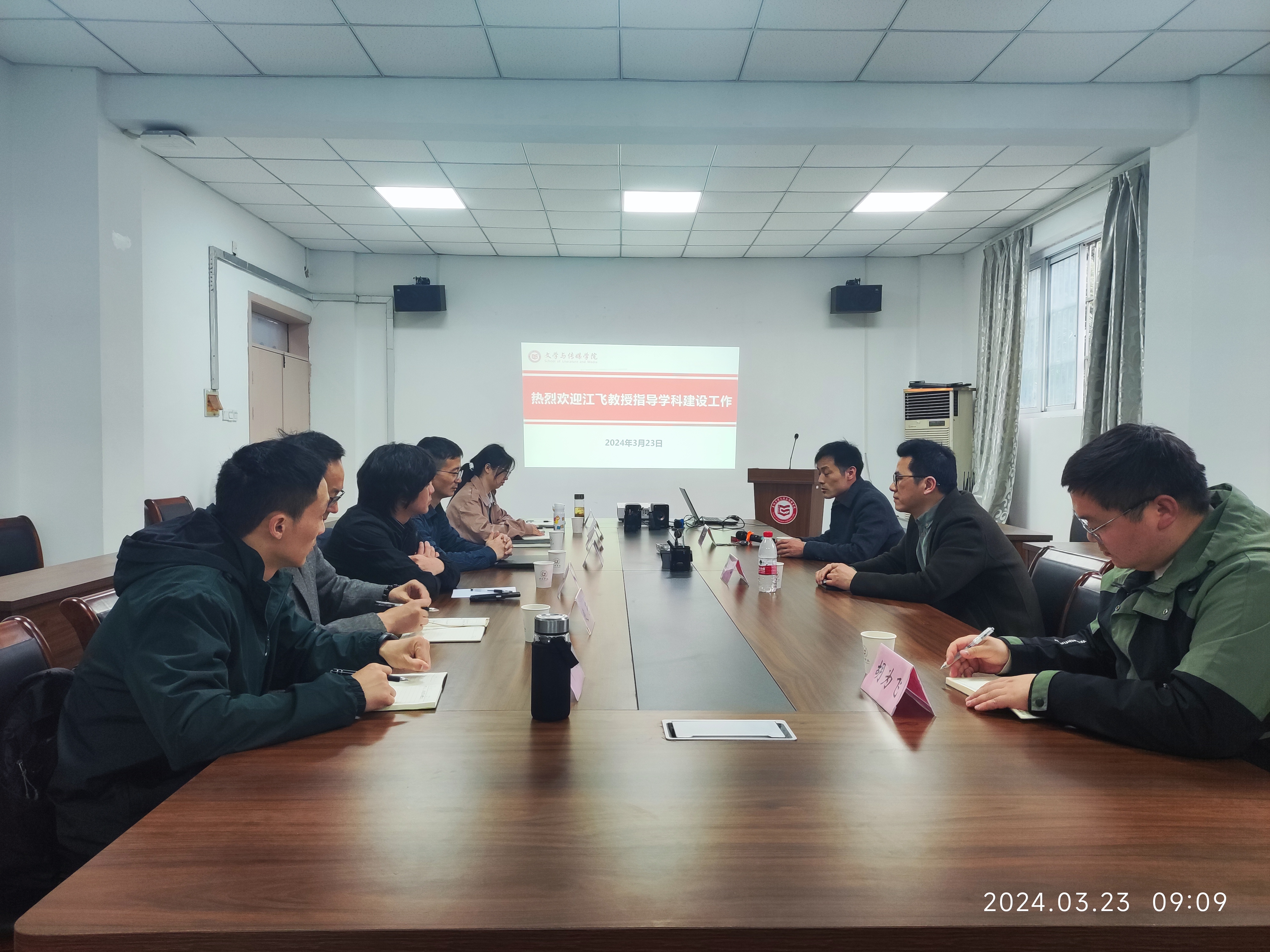 3月23日上午,文学与传媒学院在敏行楼会议室召开科研平台建设座谈会。安庆师范大学江飞教授应邀到会指导。院长彭正生,副院长王宇明,中国语言文学校级重点建设学科负责人赵东,博士、教师代表参加会议。座谈会由必赢626net入口安徽文艺研究中心负责人刘康凯主持。