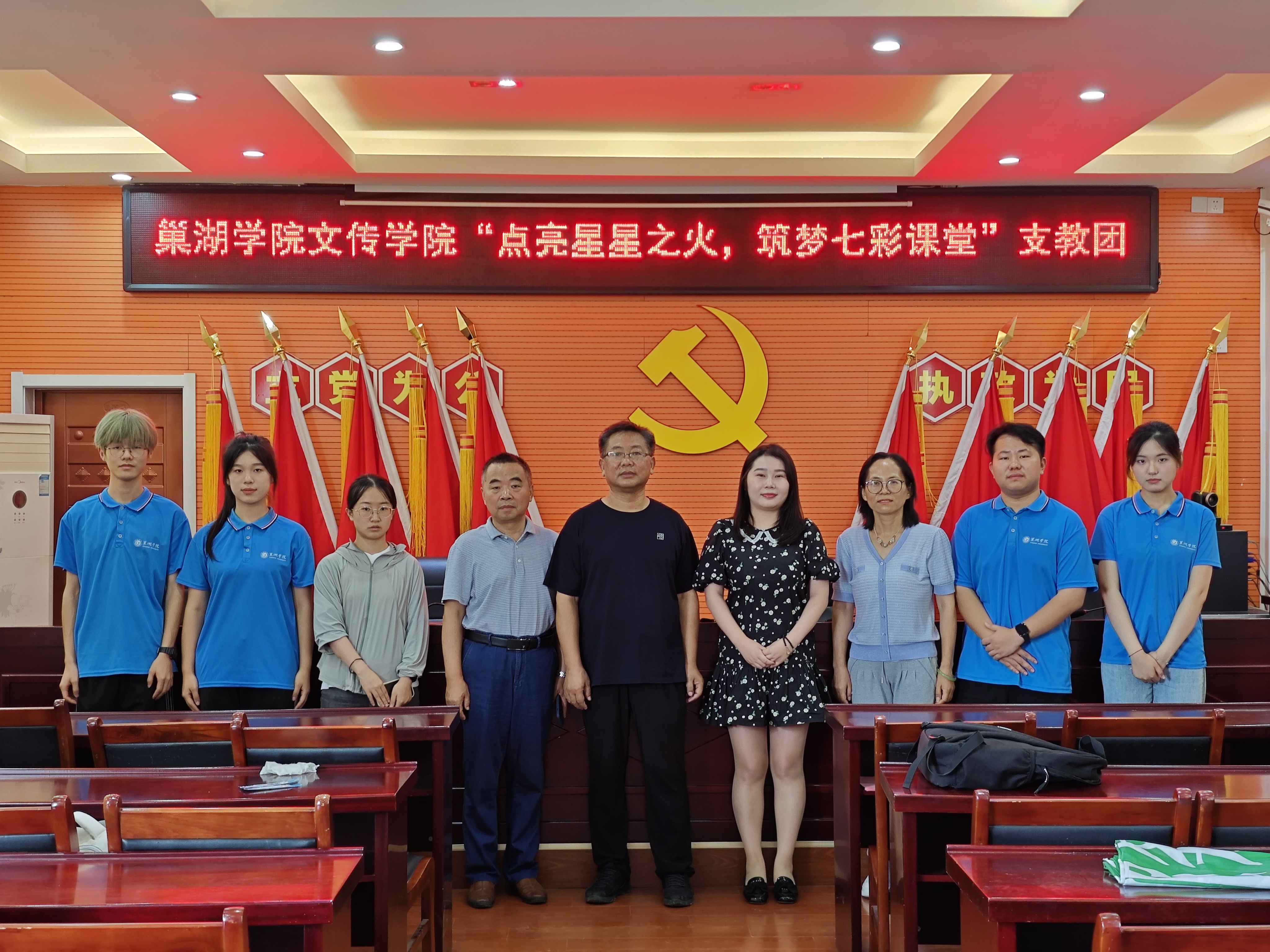 7月16-22日,必赢626net入口文学与传媒学院“点亮星星之火,筑梦七彩课堂”教育关爱服务团前往巢湖市黄麓镇合群村和巢湖市向阳社区开展为期一周的助学帮教活动。