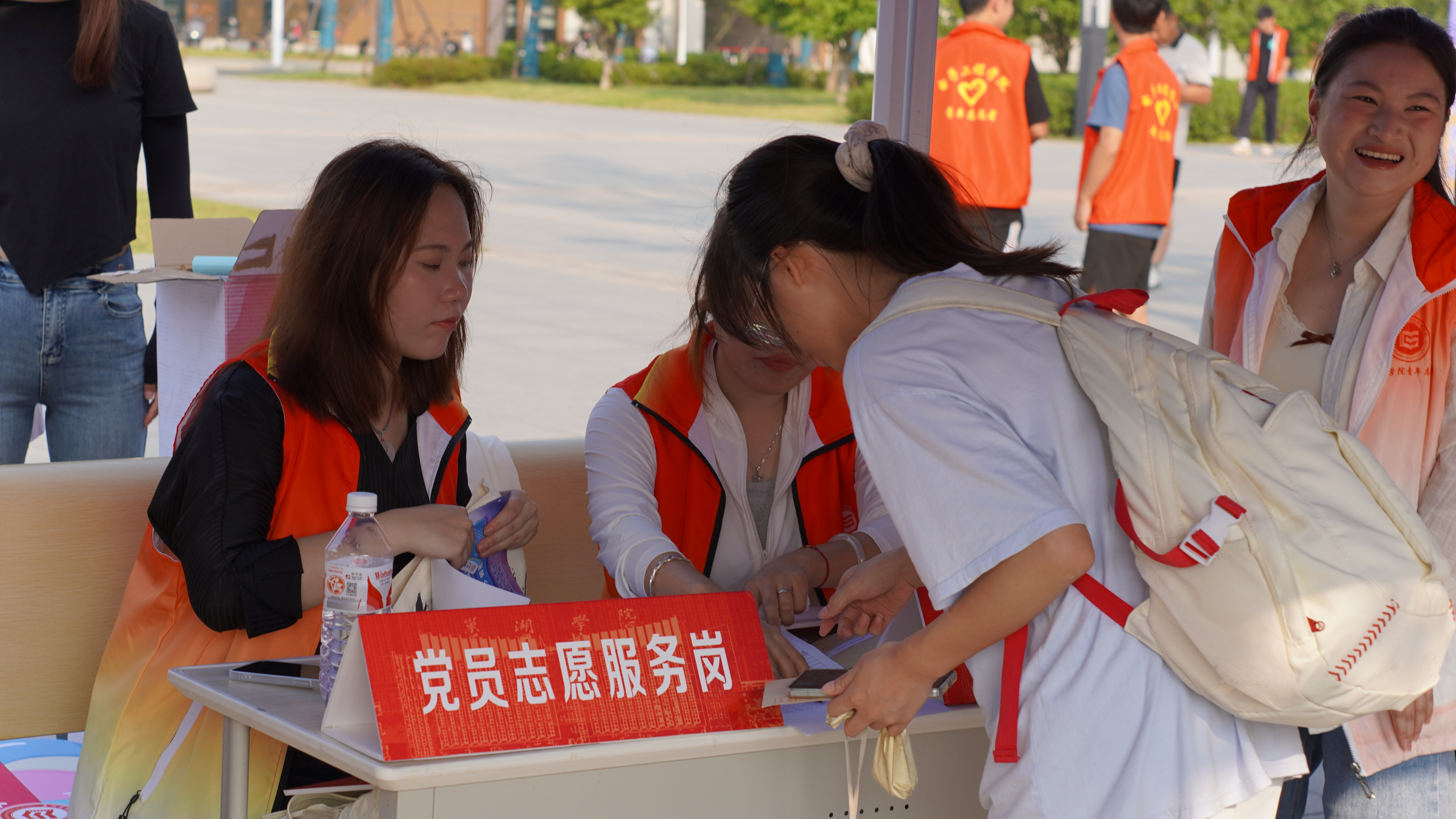 我是党员我先行,志愿服务显担当。迎新当日,三个学生党支部的党员佩戴党员徽章,主动亮明身份,积极参加学院迎新工作。在新生报到点,党员志愿者热情地帮助新生完成扫码签到、领取一卡通等手续,耐心地向新生及家长们解答关于专业学习校园生活等问题;在宿舍服务点,党员志愿者们一趟趟来回搬运行李,一个个汗流浃背的身影,组成迎新队伍中最美、最有力量的“风景线”。