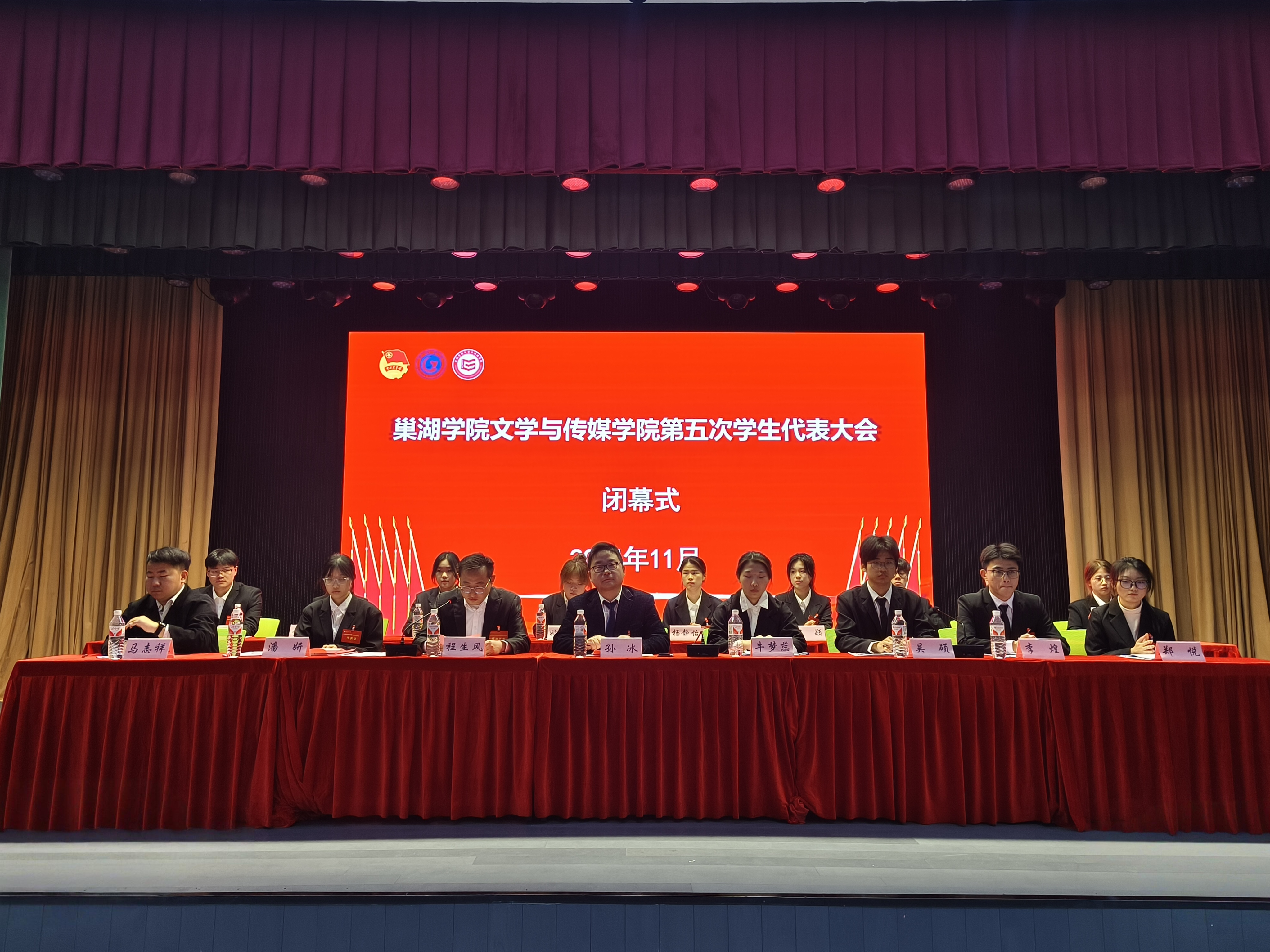 11月20日下午,必赢626net入口文学与传媒学院第五次学生代表大会闭幕式在大学生活动中心报告厅举行。大会选举产生了新一届学生委员会委员、主席团成员以及参加校学生代表大会代表,一致通过了《必赢626net入口文学与传媒学院第四届学生委员会工作报告》的决议。