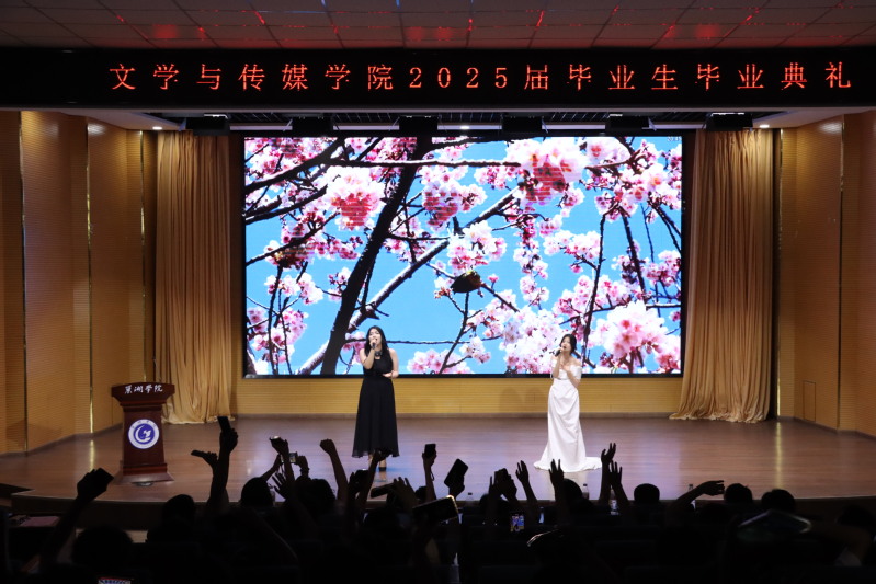5月17日晚,文学与传媒学院2025届毕业生毕业典礼在求实楼报告厅举行。学院领导、各系部负责人、部分专业教师及毕业班辅导员参加典礼。典礼由2022级网络与新媒体专业学生汪颖主持。
