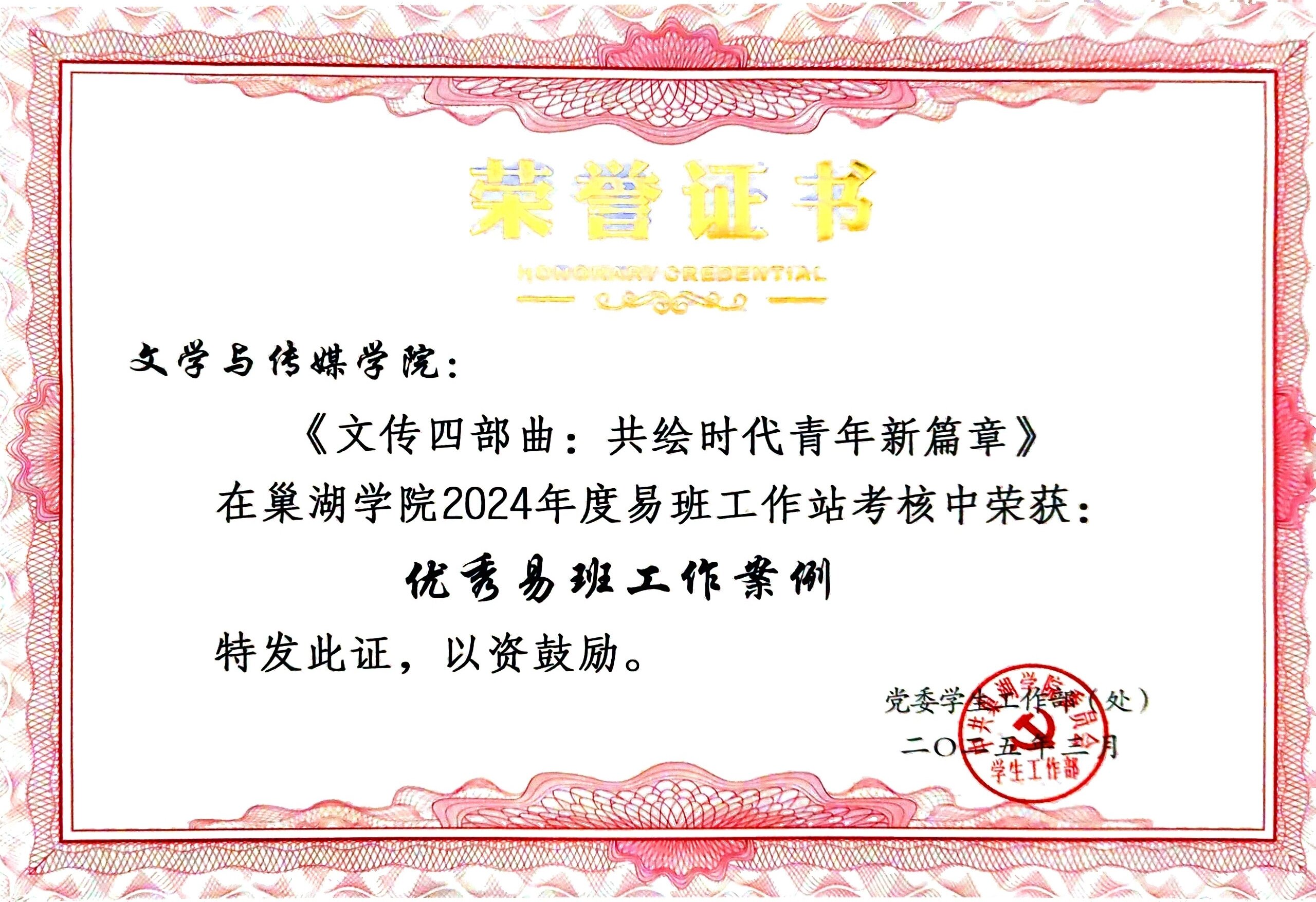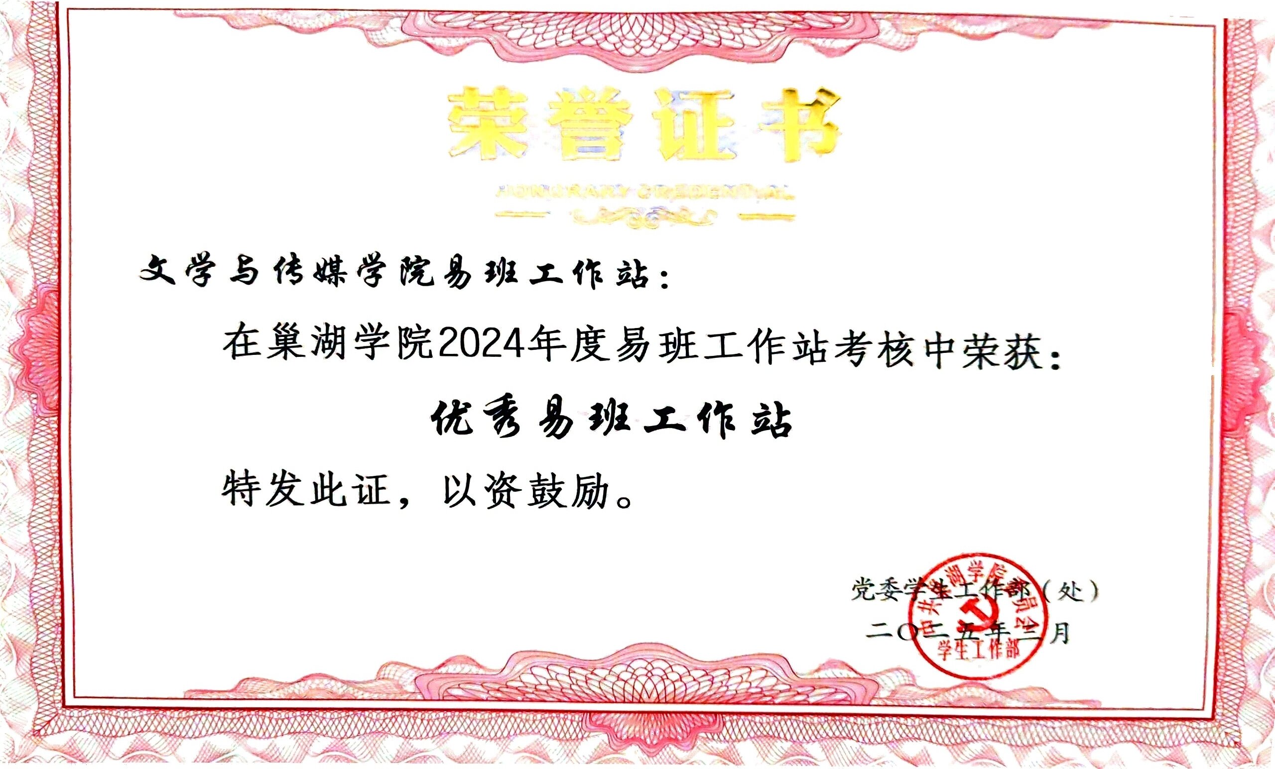 近日,必赢626net入口2024年度院级易班工作站考核结果揭晓,文学与传媒学院易班工作站获评优秀工作站,学院易班共建案例《文传四部曲:共绘时代青年新篇章》获评优秀共建案例,刘偌熙老师获评优秀指导教师,朱佳豪获评优秀工作站站长。(文、图/程生风 初审/孙冰 终审/袁凤琴 发布人/程生风)