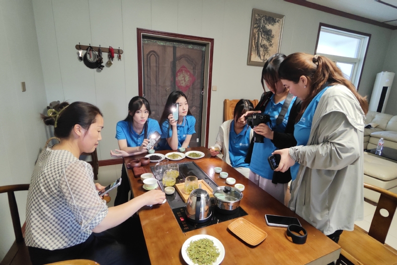 随后团队走访一家“皖美金牌民宿”,聚焦“民宿+茶体验”的运营模式,拍摄参与制茶、品茶的全过程,以及民宿创办人为大家冲泡特色茶叶、讲解茶文化的场景,通过镜头展现凌笪镇文旅融合的消费新场景。