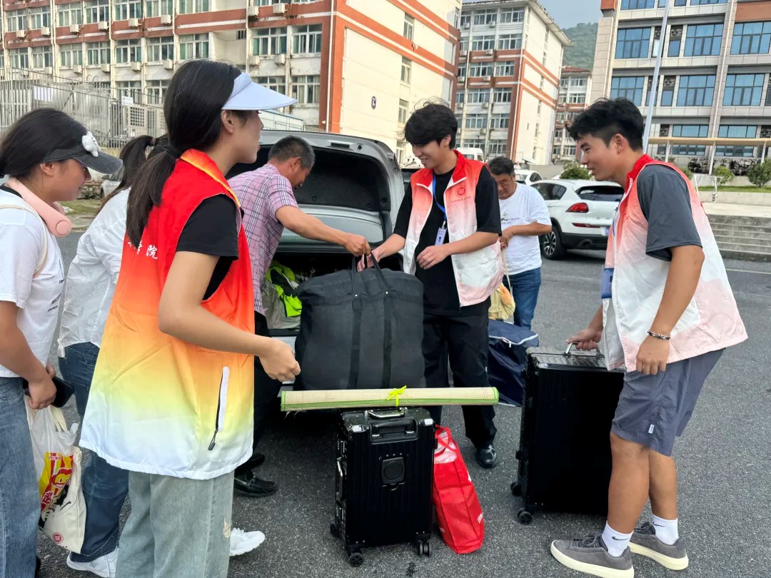 9月6日清晨,晨曦微露,学院班子成员早早抵达新生报到点与宿舍服务点,细致检查工作进展、现场优化流程、及时协调各类事宜,与新生辅导员、助导、党员先锋及志愿者们一同迎接每一位新同学的到来。