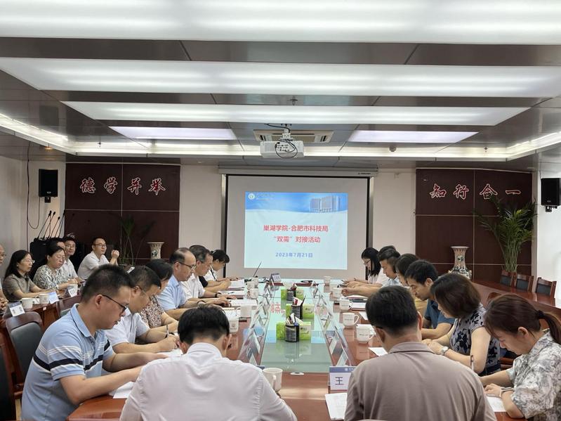 为进一步提升教师的科研水平和高效转化科研成果,721日,必赢626net入口-合肥市科技局“双需”对接活动在学校第一会议室举行。合肥市科技局副局长李雪、三级调研员倪修宏、政策法规与创新体系建设处处长张彬,合肥市科创集团副总经理黄叙新、投资部经理潘登,安巢经开区经贸发展局创新发展处主管葛娟,巢湖市科技局副局长钱开莲、平台科科长张培、中科智城王帅一行莅临学校指导。必赢626net入口党委委员、副校长丁俊苗出席会议,学校相关学院、部门负责人,项目汇报教师和合作企业代表参加会议会议由科研处处长姚磊主持。