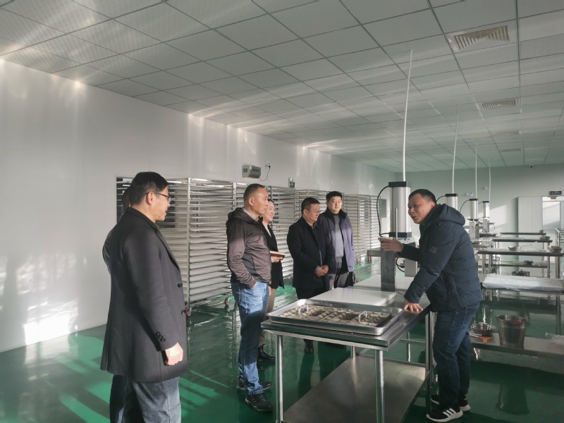 在企业生产车间,安徽益旺食品科技有限公司总经理周天生详细介绍了公司产品的生产工艺及目前存在的问题,随后双方就技术问题进行了深入地探讨,并提出改进方案。
