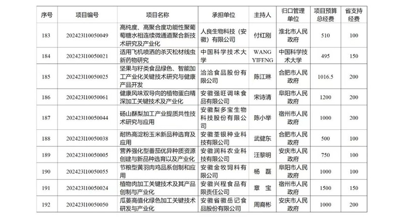 2024910安徽省科技厅下达了2024年省科技创新攻坚计划项目立项计划的通知,安徽省环巢湖乡村振兴协同技术服务中心(培育)(以下简称“中心”)与安徽梨多宝生物科技有限公司联合申报的“砀山酥梨加工产业提质共性技术研究与示范应用”项目获批立项资助,其中省资助经费200万元。