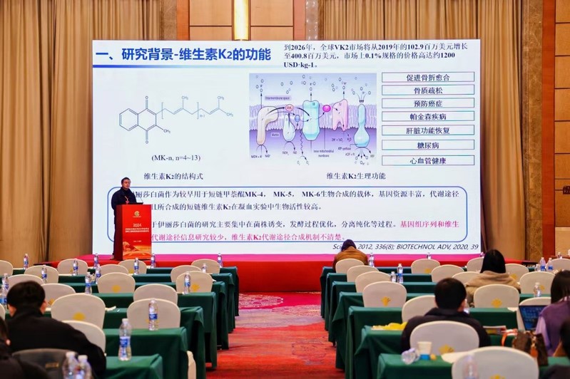 中心多名研究人员参加此次会议,其中杨强博士在“植物/微生物源食品”分会场中进行了报告交流,报告主题为“伊丽莎白菌维生素K2合成相关基因资源的发掘、整合及应用”。