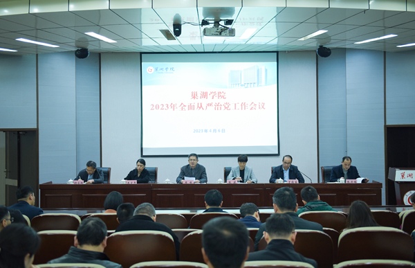 4月6日下午,巢湖学院在致知楼报告厅召开2023年全面从严治党工作会议,深入学习贯彻党的二十大精神和二十届中央纪委二次全会特别是习近平总书记的重要讲话精神,全面落实省纪委十一届三次全会和全省教育系统全面从严治党工作会议部署要求,分析研判学校全面从严治党形势,安排部署2023年工作任务。校党委书记周峰出席会议并讲话,校党委副书记、校长张莉主持会议,校党委领导班子成员、校纪委委员、副处级以上领导干部,以及后勤管理、基建、国资等部门科级以上干部参加会议。