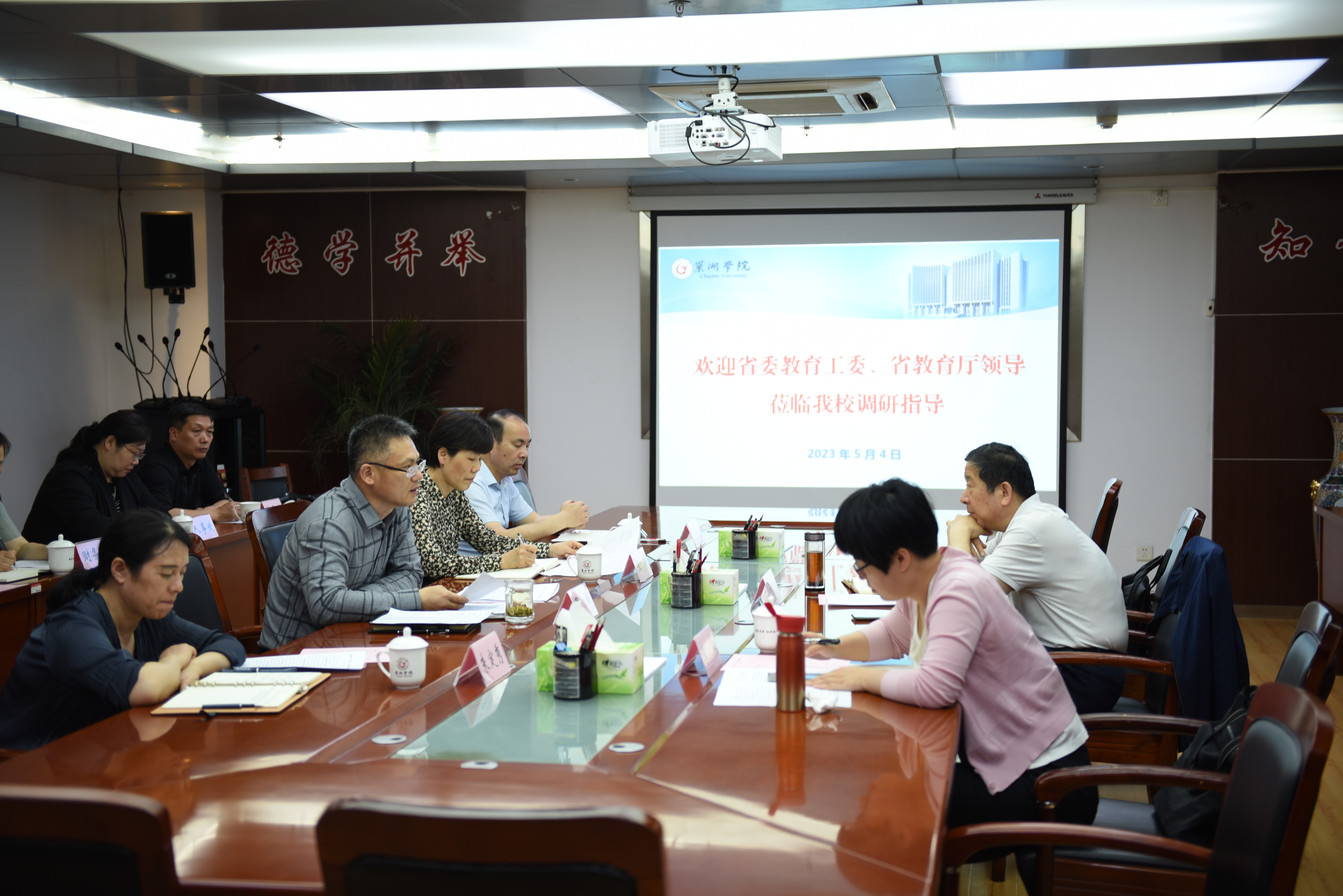 2023年5月4日下午,省委教育工委委员、省教育厅副厅长储常连在教育厅科研处副处长李灿陪同下来校开展专题调研。校党委书记周峰,党委副书记、校长张莉,党委委员、副校长朱定秀、丁俊苗,校办公室、财务处、人事处、发规处、教务处、科研处等部门负责人参加调研座谈会。