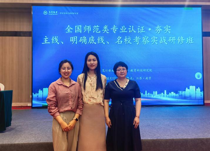 师范类专业认证是促进高校专业教学质量提升的有效途径,是教师教育改革的突破口和着力点。为了解最新认证要求,有效准备学前教育专业认证工作,教师教育学院教育系副主任邹长华,学前教育专业陶玮、教学秘书张碧影三位教师于5月13-14日参加在南京举办的“全国师范类专业认证·夯实主线、明确底线、名校考察实战研修班”的培训,培训会为期两天,三位教师全程参加。