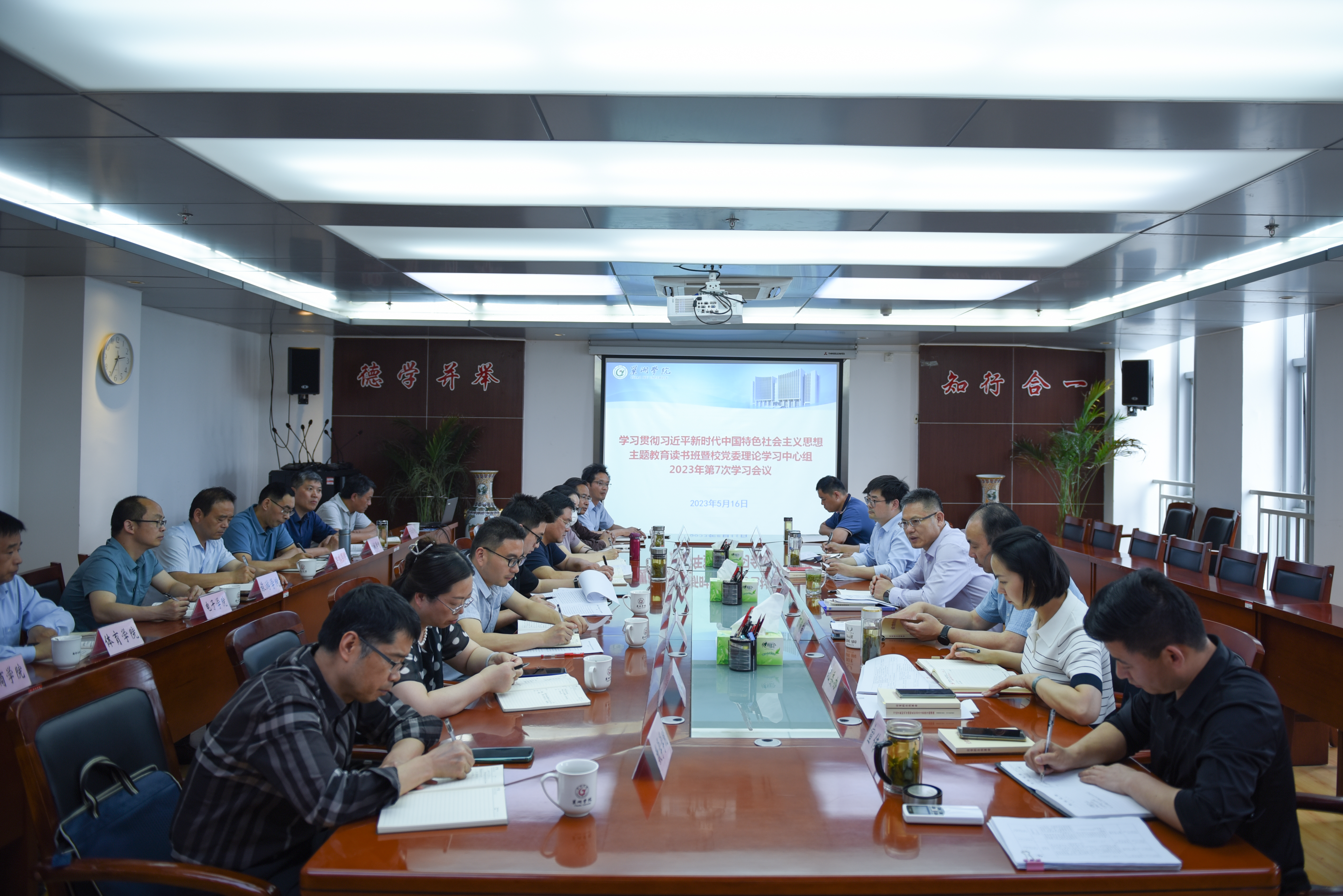 周峰要求,各二级学院党委书记要认真研究贯彻落实学校关于主题教育的各项工作方案,把主题教育工作谋划好、组织好、落实好,确保“规定动作”做到位,“自选动作”有特色;要高质量做好调查研究,理论学习和调研;教育引导广大党员、师生认真学习习近平新时代中国特色社会主义思想,统一思想,凝聚共识;各基层党组织要依托“三会一课”、主题党日等形式,组织党员师生开展学习与研讨,每一位处级干部带头讲好党课,扎实推进主题教育走深走实;各二级党组织都要通过主题教育不断地查摆在推动发展中遇到的突出困难和问题,制定清单和整改方案,明确整改任务推动事业发展;要积极营造主题教育浓厚氛围,推动主题教育深入群众、深入基层、深入人心。(文、图/樊振华 初审/郭超 终审/张连福 发布/樊振华)