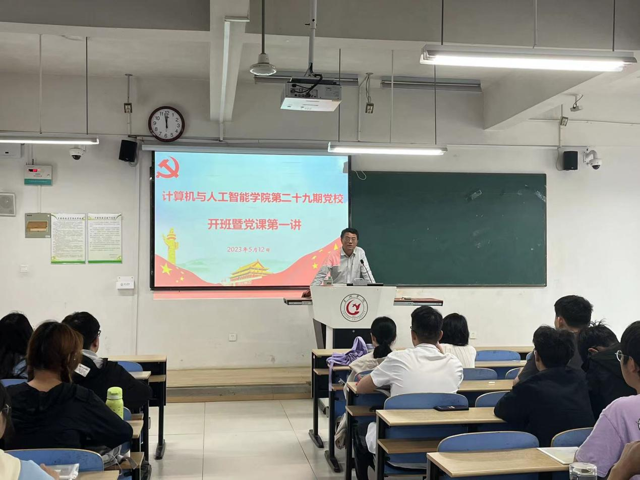 为深入学习贯彻习近平新时代中国特色社会主义思想,加强入党积极分子队伍建设,提高入党积极分子的思想觉悟。5月12日中午12:00,计算机与人工智能学院第29期业余党校开班典礼暨党课第一讲在慎思楼中104教室举行。
