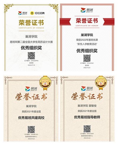 坚持守正创新,学校结合实际和学生成长需求,建立健全线上思政教育品牌矩阵,积极组织学生参加各类各级思政教育活动,在教育部易班发展中心举办的“新生入学教育”“简历设计大赛”等活动中11次获“优秀组织奖”,在安徽省网络思政中心举办的“皖音承经典青春颂祖国”等活动中获“优秀组织奖”。