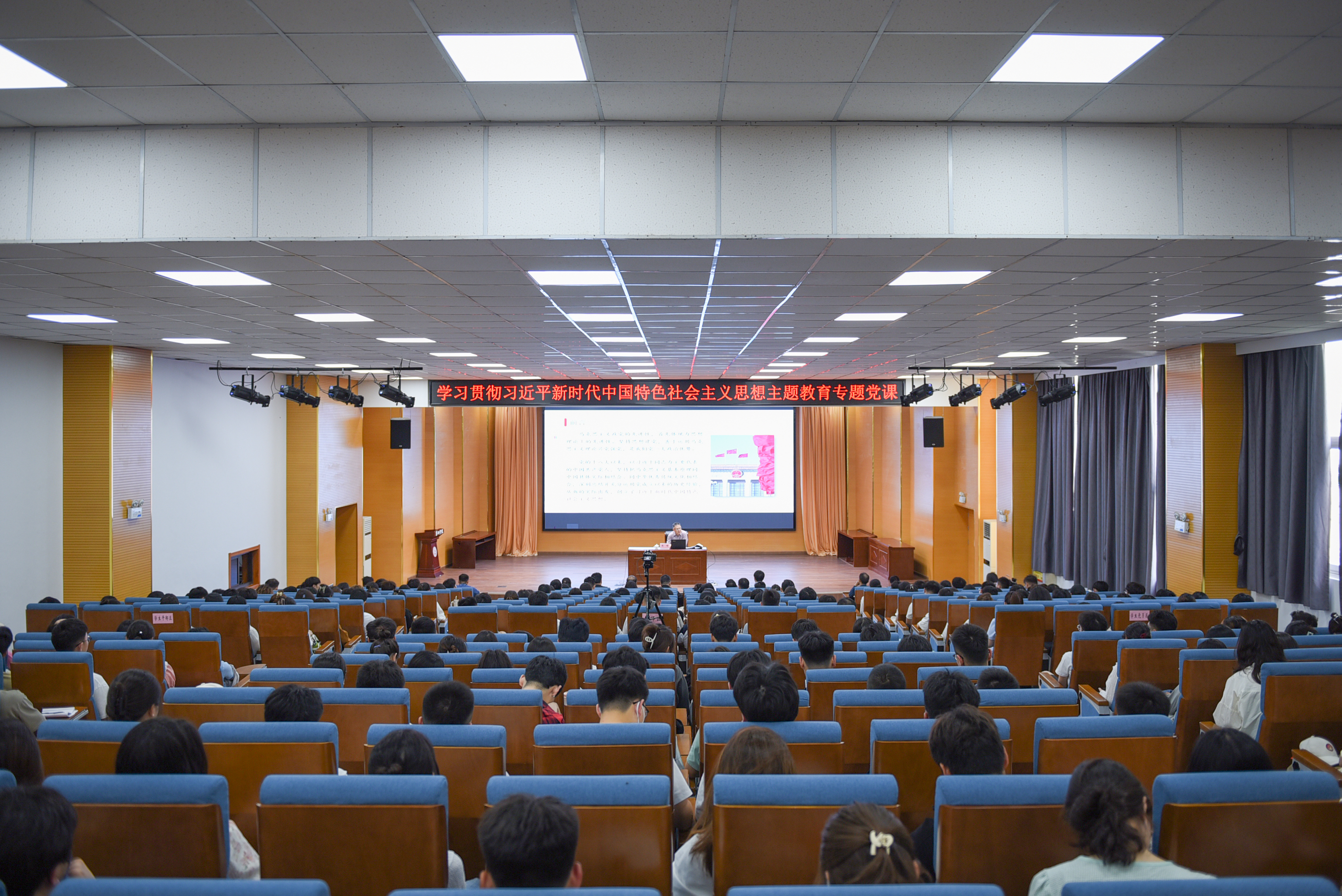 为深入开展学习贯彻习近平新时代中国特色社会主义思想主题教育,牢牢把握“学思想、强党性、重实践、建新功”总要求,进一步引导广大党员干部努力在以学铸魂、以学增智、以学正风、以学促干方面取得实实在在的成效,5月18日下午,校党委书记周峰在求实楼报告厅讲授《感悟思想伟力 凝聚奋进力量全面推进地方应用型高水平大学建设》主题教育专题党课。各二级学院党委副书记、全体专兼职辅导员、学生党员代表和学生干部代表340余人参加讲座。