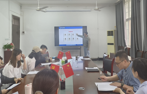 余鹏带领全体党员共同学习了习近平总书记在学习贯彻习近平新时代中国特色社会主义思想主题教育工作会议上的讲话精神。他强调,党员同志们要认真领会讲话精神,深刻领会此次主题教育的重大意义。作为高校党员教师,我们要坚守为党育人、为国育才的初心使命,要以这次主题教育为契机,加强党的创新理论武装,不断提升自身的教科研能力、创新能力和思政育人水平,为奋进新征程凝心聚力,踔厉奋发、勇毅前行。党支部副书记李成飞领学《习近平著作选读》部分章节。支部秉承把“将党建融入科研教学一线”的党建引领理念,组织商务英语系全体教师参加了学习交流,并特邀大学外语教学部何后蒋老师讲授专题党课“《习近平谈治国理政》融入大学英语课程教学的路径”。何后蒋结合高校思政工作的要求,详细介绍了大学英语课程思政框架模式,并具体讲述了自己在授课中的实践。大家一致表示,要积极投入学习贯彻习近平新时代中国特色社会主义思想主题教育,在思想上凝心铸魂,在党性上锤炼修养,在实践中提高本领,在新时代奋勇争先;要进一步挖掘课程教材思政元素,融入课堂教学,用好课堂教学“主渠道”,提升专业学生的国际传播能力,培养学生用外语讲好中国故事;要学习何老师用情、用心、用力,进行课程思政教研的精神和经验做法,不断提升思政育人的能力水平。