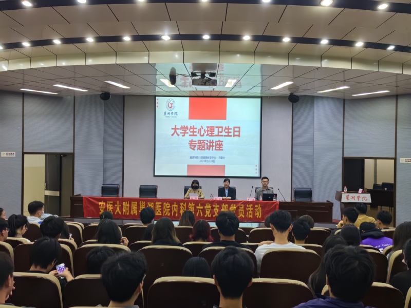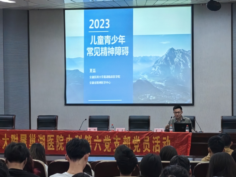 主讲人为安医大附属巢湖医院第六党支部主治医师、儿童青少年心理门诊负责人夏磊博士,主题为《青少年常见精神障碍及心理治疗》,第六党支部组织委员王芸等五名党员协助测量。讲座由教师教育学院教工第一党支部组织委员王安琪组织,支部支委委员、心理健康教育中心副主任郑艳主持。