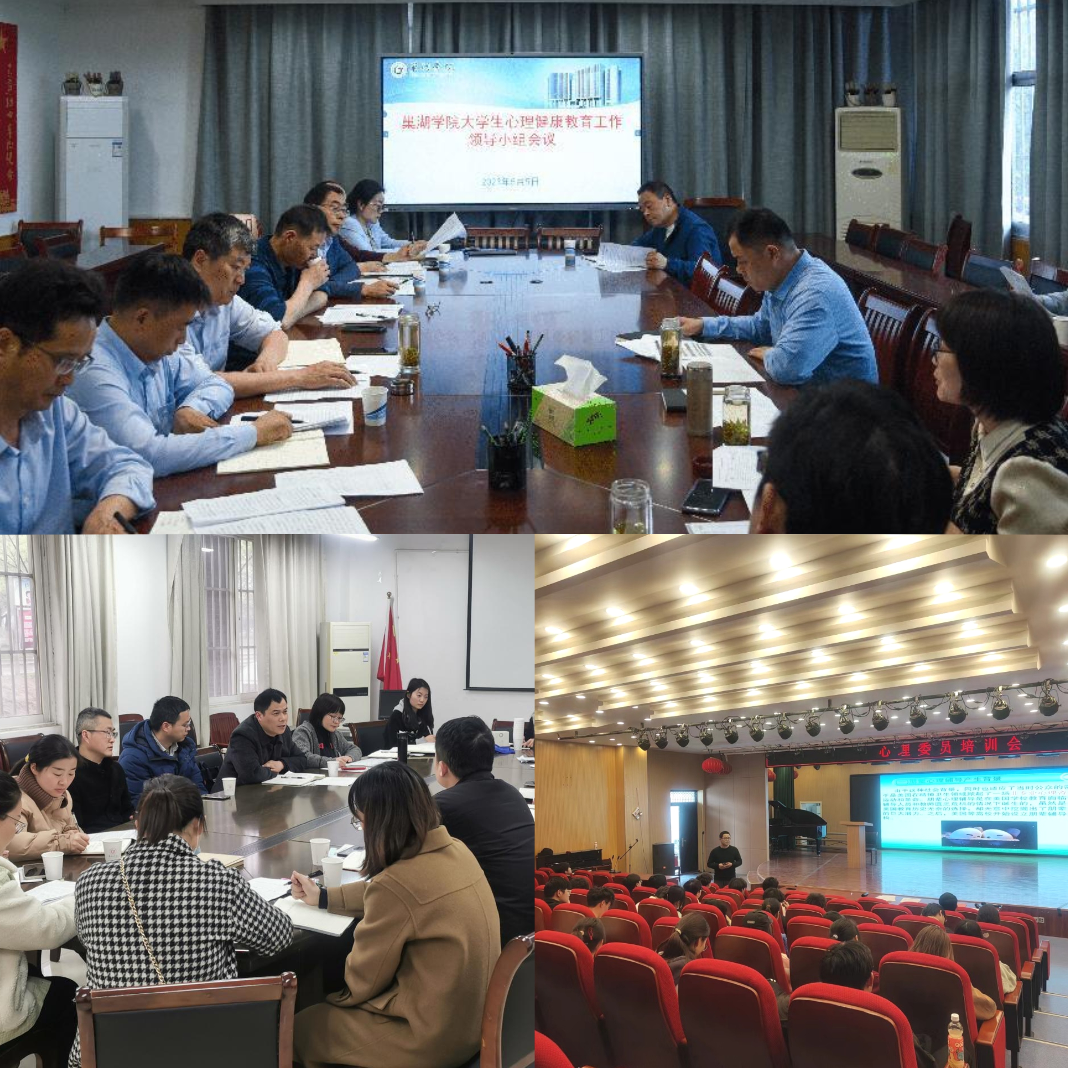 学校配备9名专职心理教师和10名兼职心理教师,各学院组建心理健康教育领导小组,选拔培养以班级心理委员、宿舍心理信息员为主体的近2800名朋辈辅导员工作队伍。截至目前,心理委员已全部完成培训并颁发培训证书,二级学院党委副书记、专兼职心理健康教师、专兼职辅导员共计102人全部完成专题培训,进一步增强学校心理健康教育工作的针对性和实效性,为莘莘学子的心理健康“保驾护航”。畅通学校与安徽医科大学附属巢湖医院的转介诊疗绿色通道,做好对心理危机学生的跟踪服务及危机后支持性辅导,保障转介学生的问题能够得到及时有效解决。