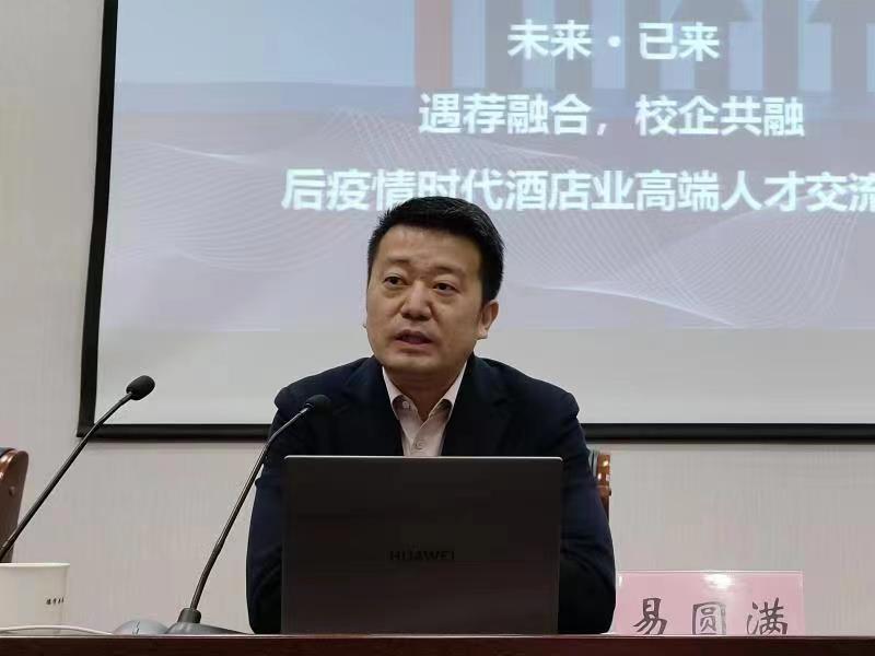 会议伊始,沈德福对优秀校友易圆满的学习成长经历进行介绍,并代表学院对其表示热烈欢迎。随后,易圆满作了题为“后疫情时代酒店业高端人才交流会”的主题报告。易圆满结合自身学习、实习、工作的成长经历,从“旅游管理专业就业方向”“旅游管理专业就业前景”“中国酒店业发展现状及前景”“对大学生几点建议”四个方面进行了经验分享和建议。易圆满指出旅游行业是全球十大热门行业之一,旅游管理专业在十大百万年薪职业中名列前茅。结合改革开放四十多年中国旅游行业的发展,告诉大家旅游行业就业前景和升值空间潜力巨大。通过对酒店行业未来趋势的分析,告诫大家要结合行业发展合理规划自己的专业学习,深耕细作,培育自我的专业能力。最后易圆满设问“10年后,你想成为什么样的人”,建议同学们要懂得“自律”,要懂得“一万小时法则”,要珍惜青春大好时光,勤学苦练,掌握过硬的技术本领,努力成为能工巧匠。整场报告会有理论有实践,有现实有展望,有谆谆教导有殷切期望。