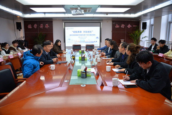 郭超对校友的到来表示热烈欢迎,对参会校友基本情况作简要介绍,他们分别是原校学生会、社团联合会和部分社团学生骨干,现在知名高校、企业、中小学任职。郑向阳介绍了学校校友工作开展情况和下一步计划举措。