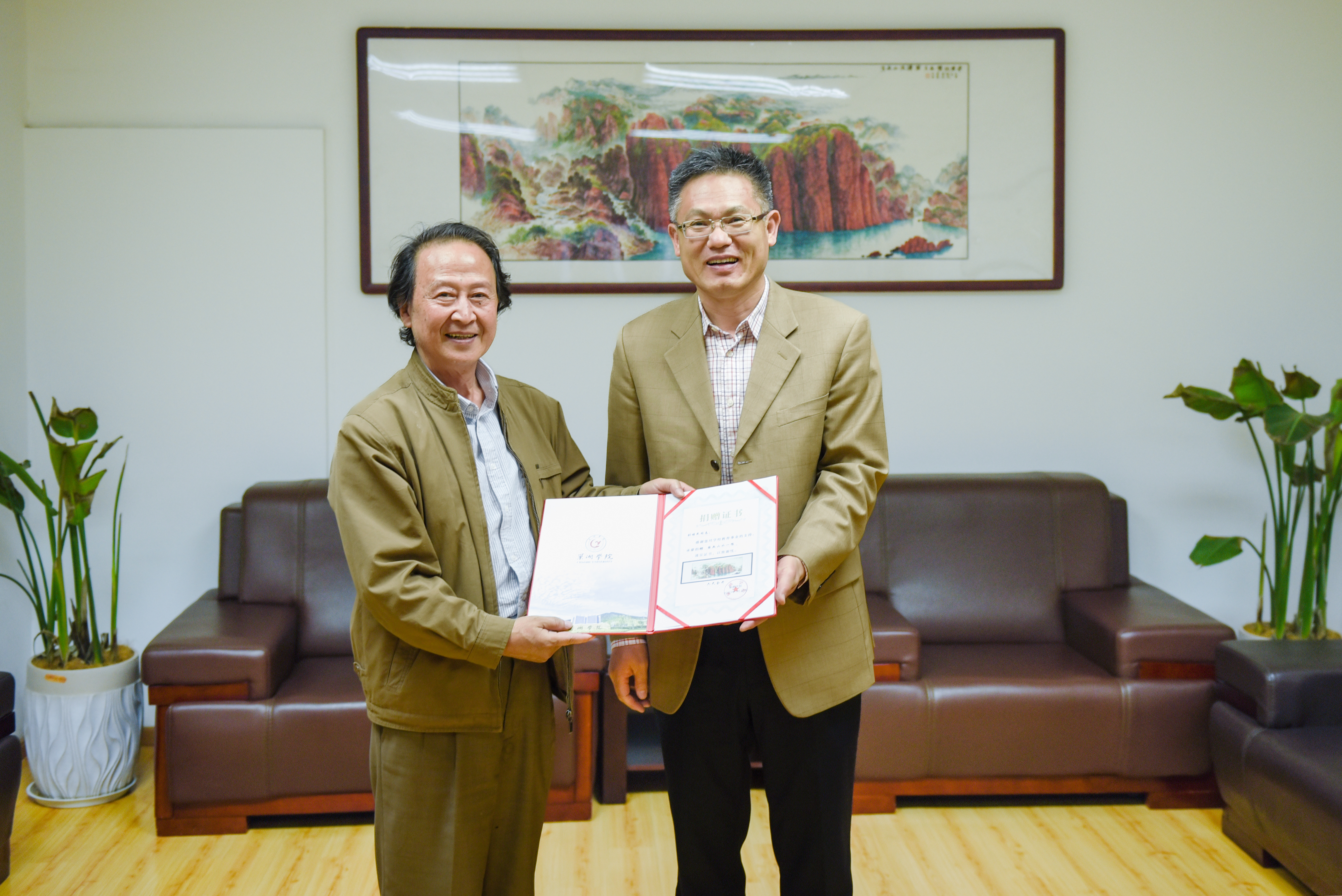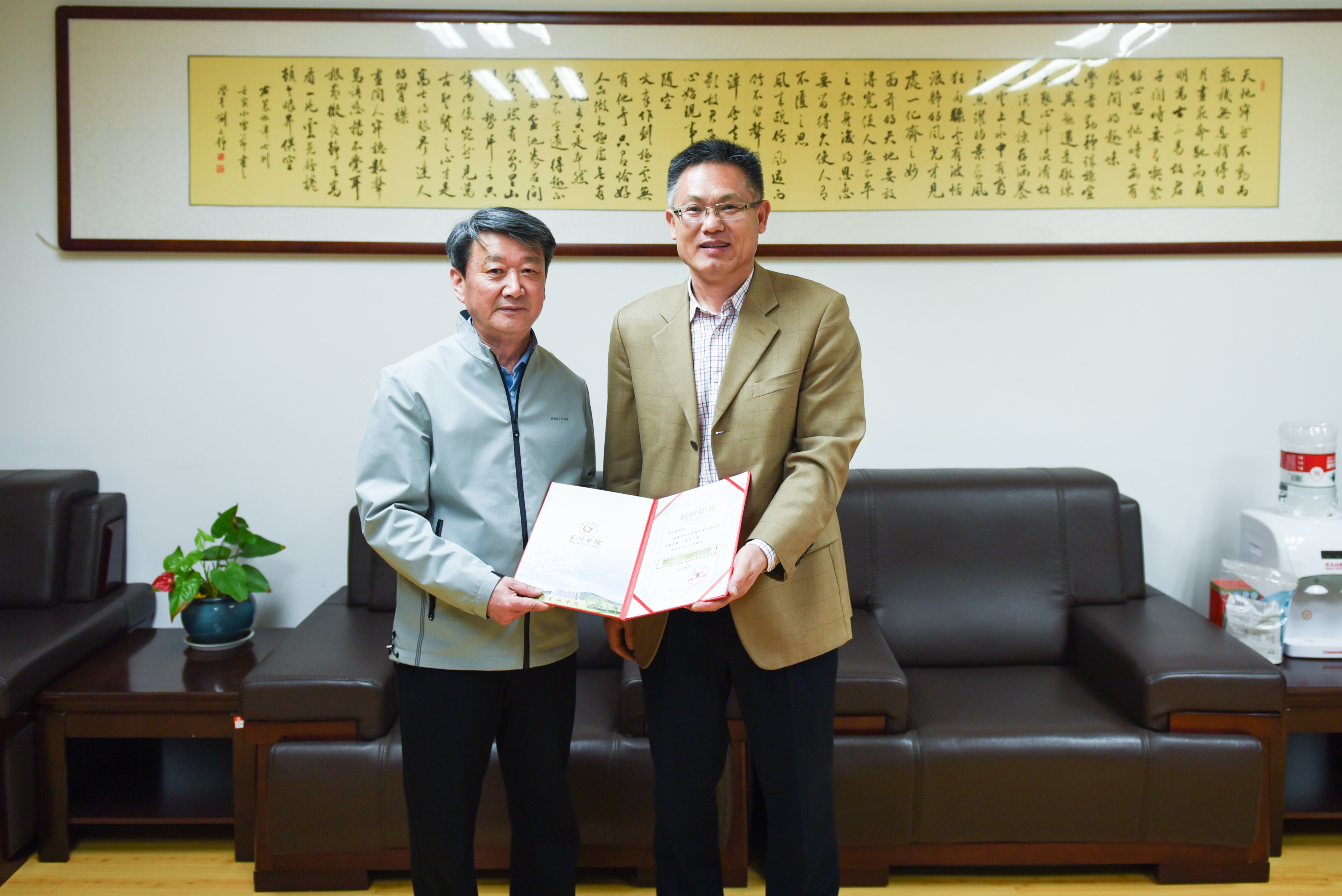 仪式上,周峰向刘培民、蒯文铮颁发了捐赠证书并合影留念。