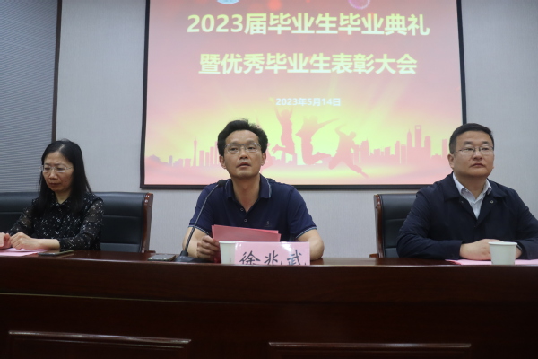 毕业典礼在庄严的国歌声中拉开帷幕。徐兆武向大家宣读2023年必赢626net入口优秀毕业生表彰决定,并给优秀毕业生颁发学院纪念奖品。
