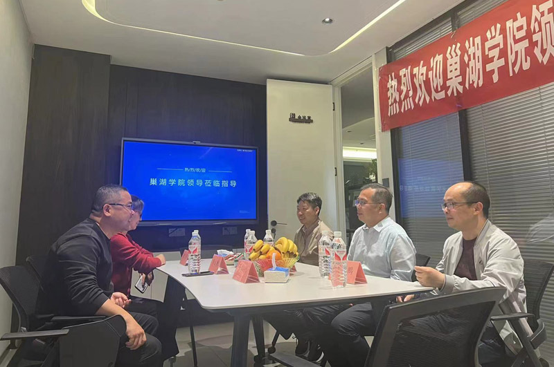 在安徽芯瑞达科技股份有限公司,公司生产中心总经理陈建新详细介绍了公司的发展历程、产品研发及未来发展方向,希望下一步在实习就业、人才培养、产学研等方面深化合作。