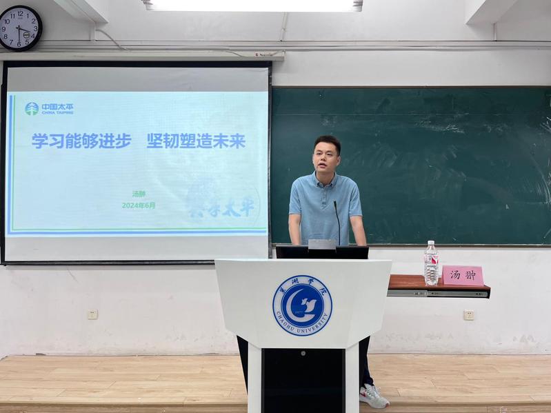 校友领航,助力成长。汤翀以“学习能够进步,坚韧塑造未来”为主题,通过PPT的形式从求学和就业两方面向同学们分享经验心得,就为何学习、如何学习及选择平台进行详细讲解。汤翀结合自身经历,鼓励同学们要注重自身学习能力和创造能力的提高,把书本知识与工作实践紧密结合起来,明确未来方向、不断钻研、掌握实实在在的知识,增强自身的内驱力。他表示,大学四年是人生中最宝贵的青春岁月,希望同学们珍惜时光、珍惜缘分,在人生道路上奋力拼搏、在专业知识上勤学苦练、在综合素质上不断提升、在点滴小事中厚积薄发,不断提升自我,成为能够担当时代大任的新时代大学生。在交流环节,针对同学们的疑问,汤翀耐心讲解,向同学们传递前行力量,指明奋斗方向,激励学子们踔厉奋发、笃行不怠、全面发展、不断前行。