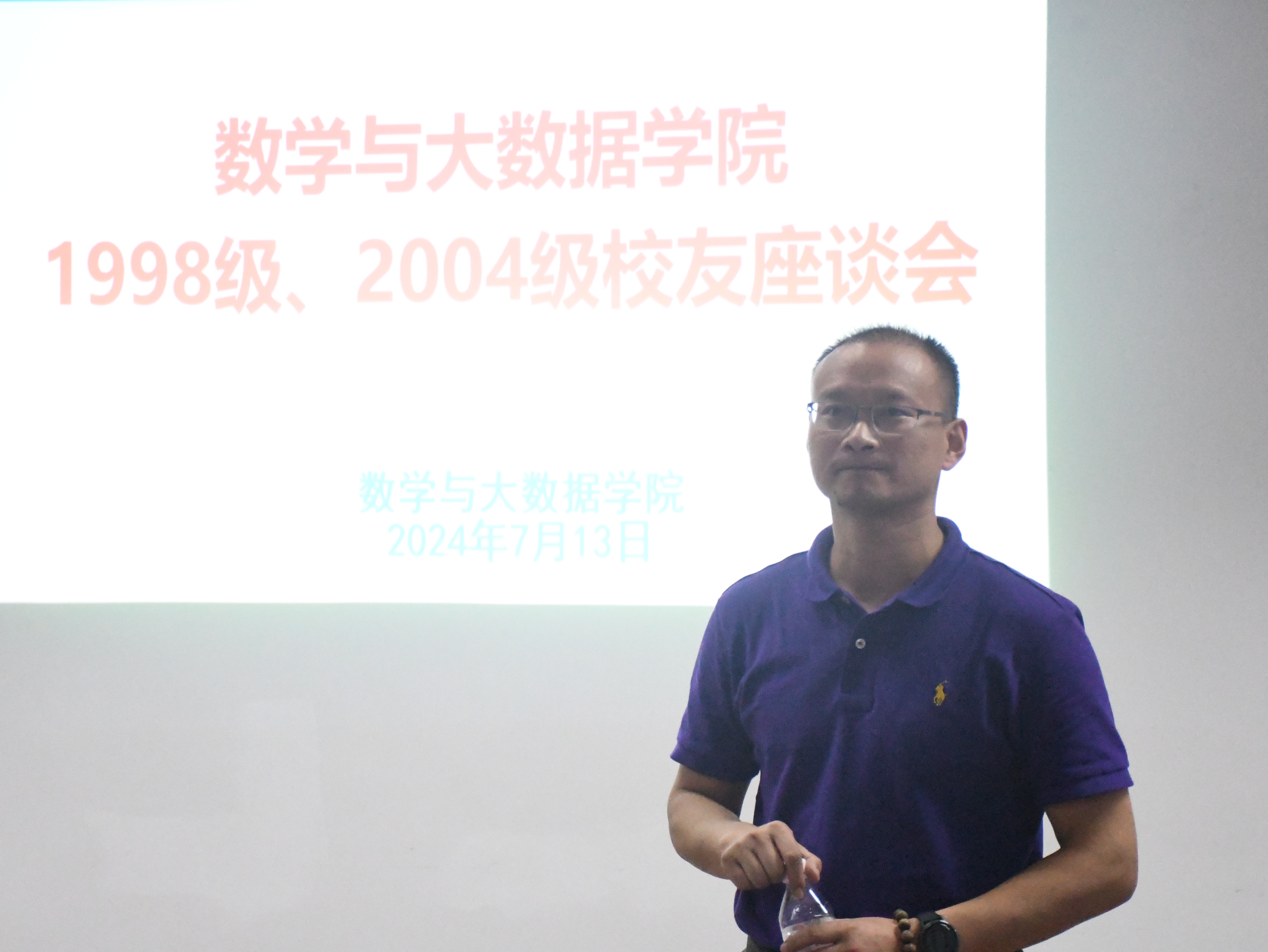 数十载同窗聚首,忆芳华岁月如歌。数学与大数据学院1998级数学教育与2004级数学与应用数学专业部分校友于7月13日共同返校,并于当日下午14:00在笃行楼会议室举办校友座谈会。数学与大数据学院副院长陈佩树、彭维才,校友办副主任郑向阳,1998级数学教育专业班主任、原数学系系主任钱云应邀参加,本次座谈会由学院党委副书记郝江锋主持。
