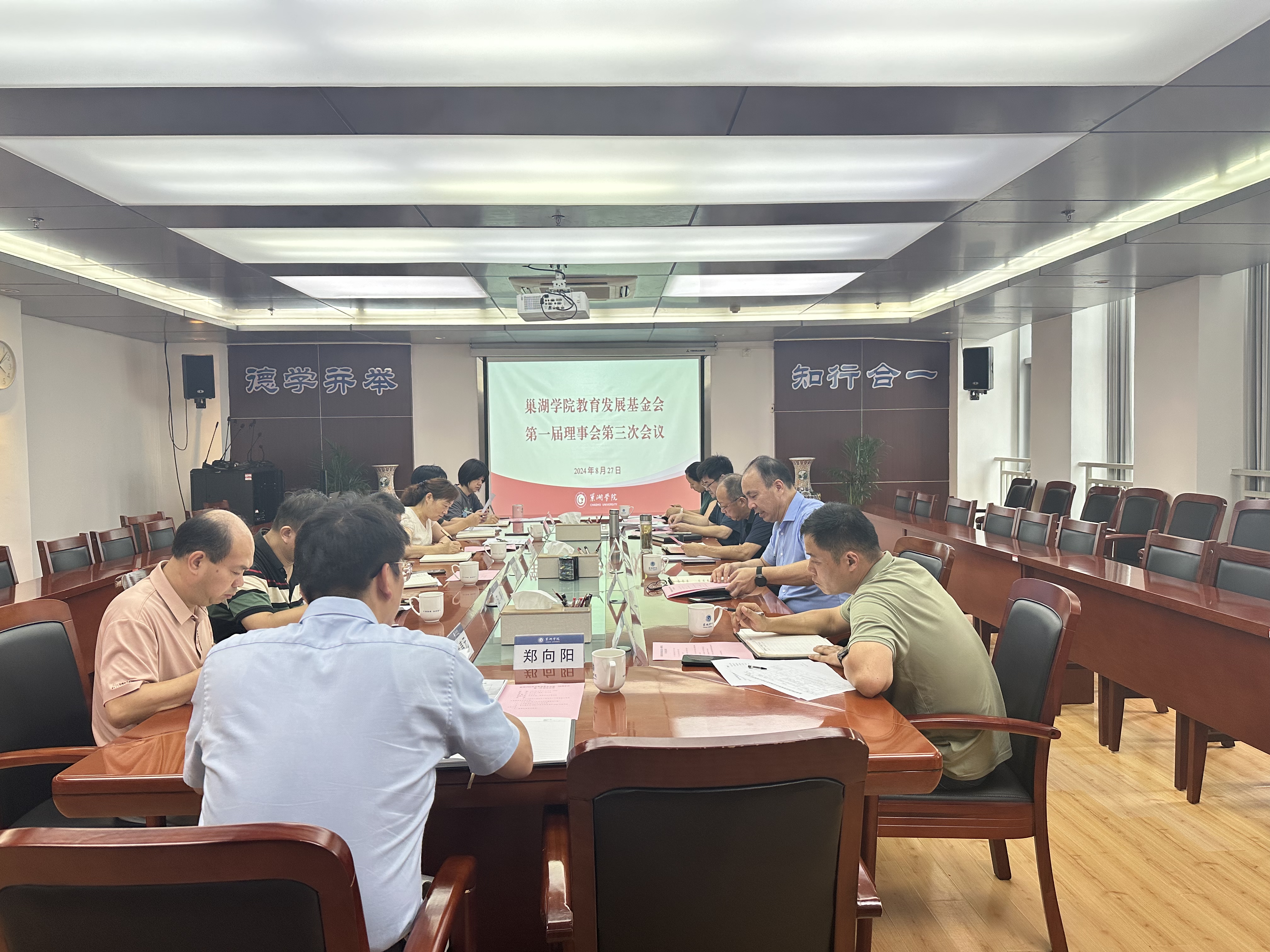 2024年8月27日下午,必赢626net入口教育发展基金会第一届理事会第三次会议在图书馆八楼第一会议室召开。会议由理事长祝家贵主持,基金会副理事长丁俊苗、理事会成员、监事,相关工作人员参加了会议。
